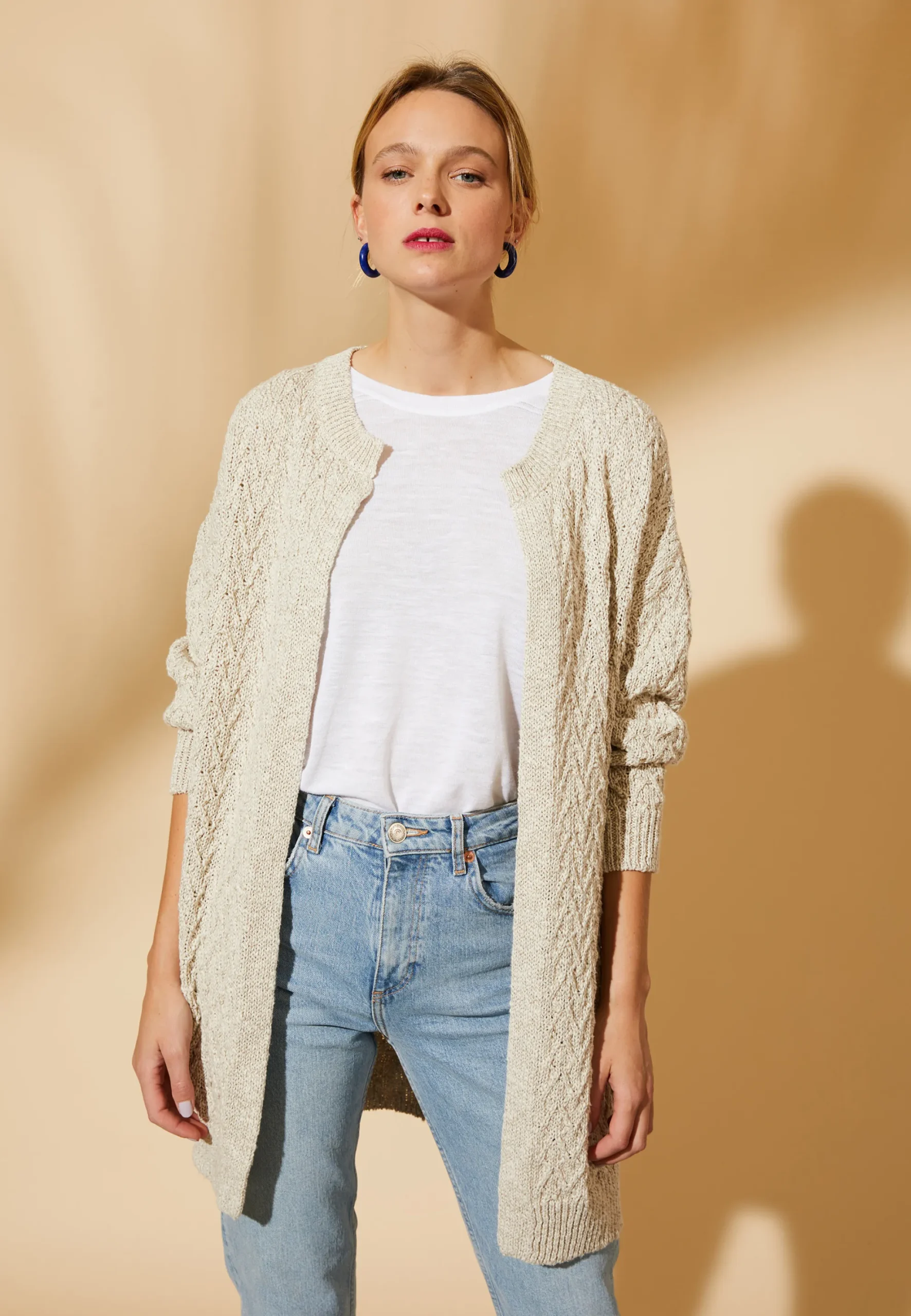 Le Gilet Polenia Est La Piece Parfaite Pour Completer Votre Garde-Robe De La Collection Femme De Maison Montagut. Sa Coupe Longue Et Son Design Ouvert En Font Un Vetement Tres Polyvalent, Qui Peut Etre Porte A La Fois Comme Un Pull Ample Ou Comme Une Veste Legere. Le Melange De Coton Et De Lin De Haute Qualite Procure Une Sensation De Douceur Et De Confort Sur La Peau, Tout En Etant Respirant Et Durable. Tricote En Europe, Il Beneficie D’Un Savoir-Faire Et D’Une Qualite Irreprochable. Le Gilet Polenia S’Associe Parfaitement Avec Une Chemise, Un Polo Ou Un Top Pour Un Look Chic Et Decontracte.