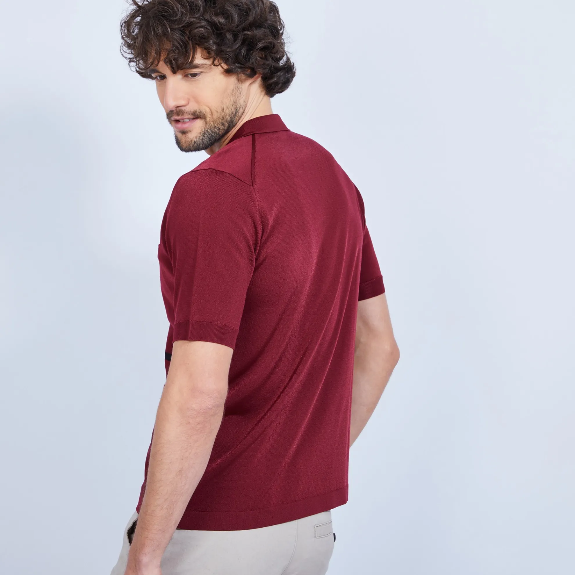 Polo Manches Courtes Pour Homme En Fil Lumiere. Rayures Graphiques Bicolores Sur Le Devant. 1 Poche Avec Logo Fleur Brodee.