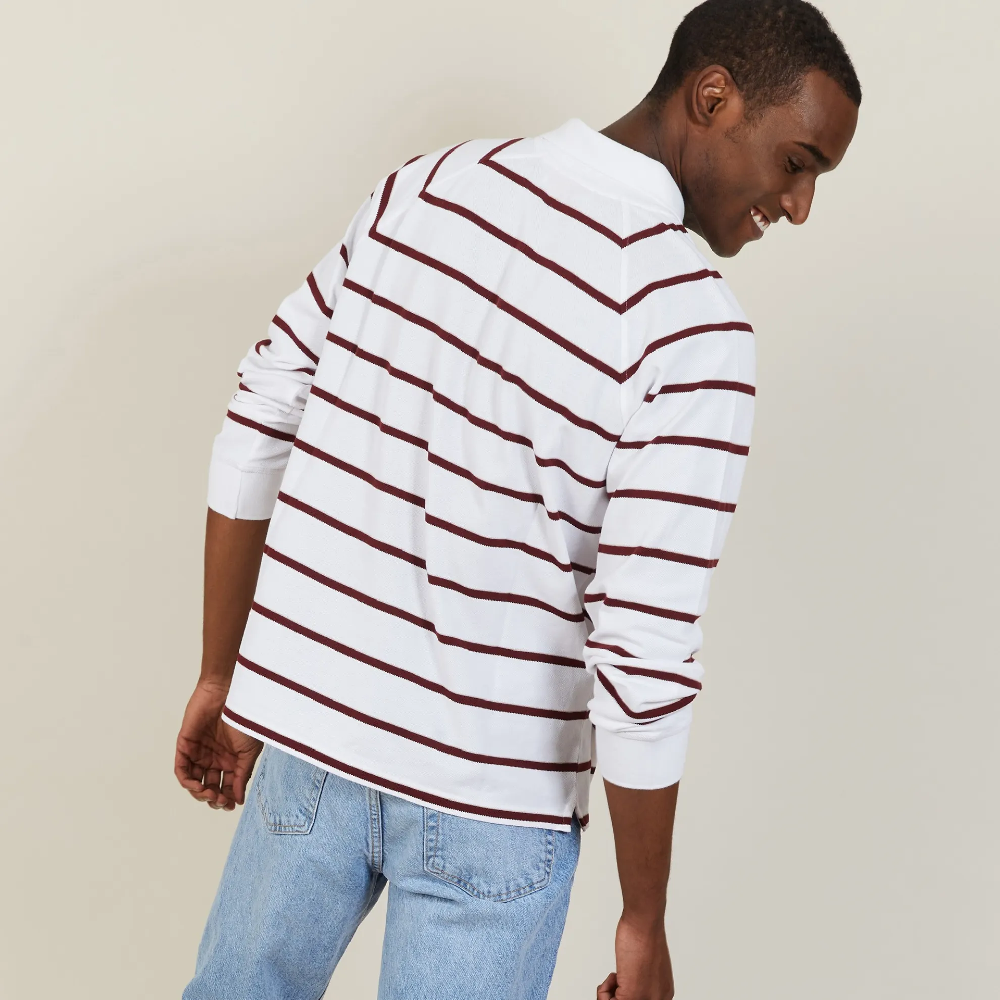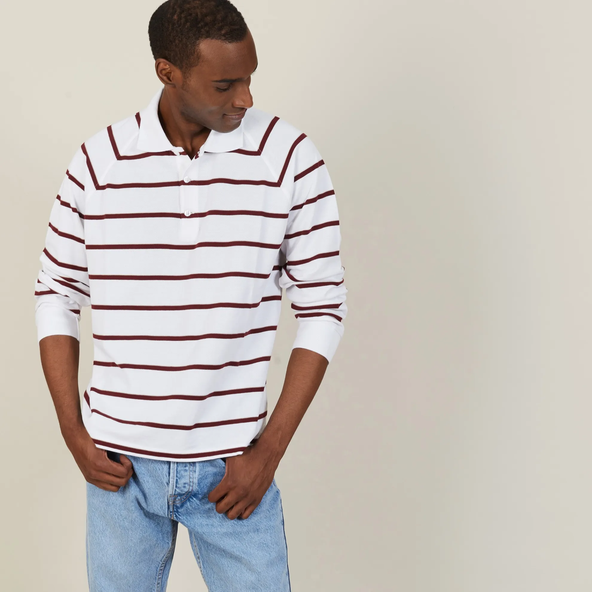 Polo En Coton Tricote En Point Jersey Dans Nos Ateliers De Braga. Coupe Droite, Manches Longues, Encolure Polo, Emmanchures Raglan. Rayures Sur L’Ensemble Du Modele.