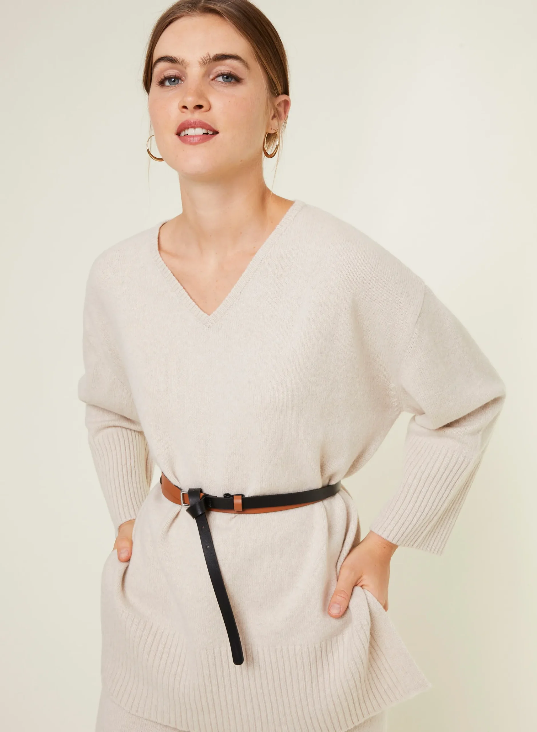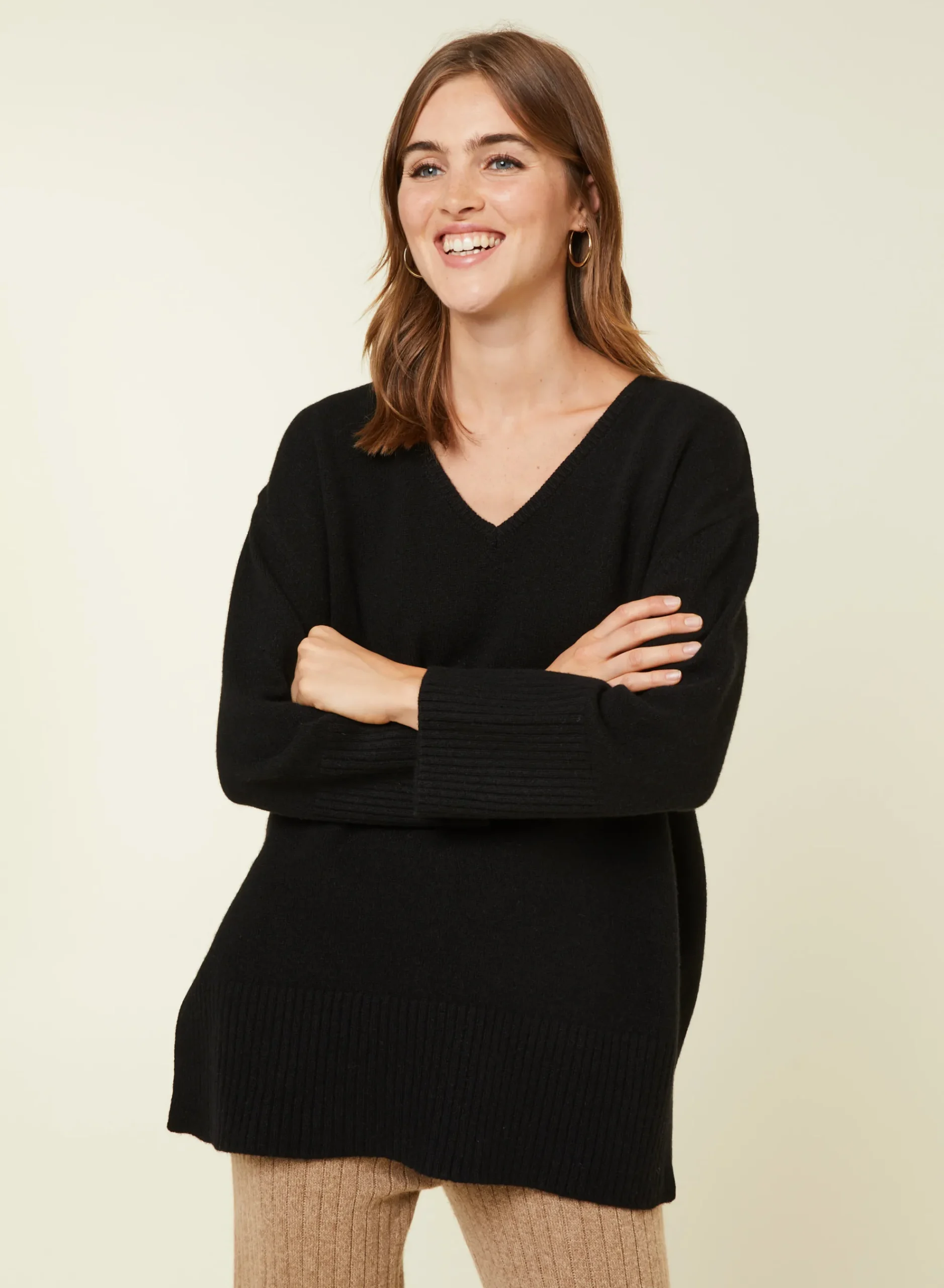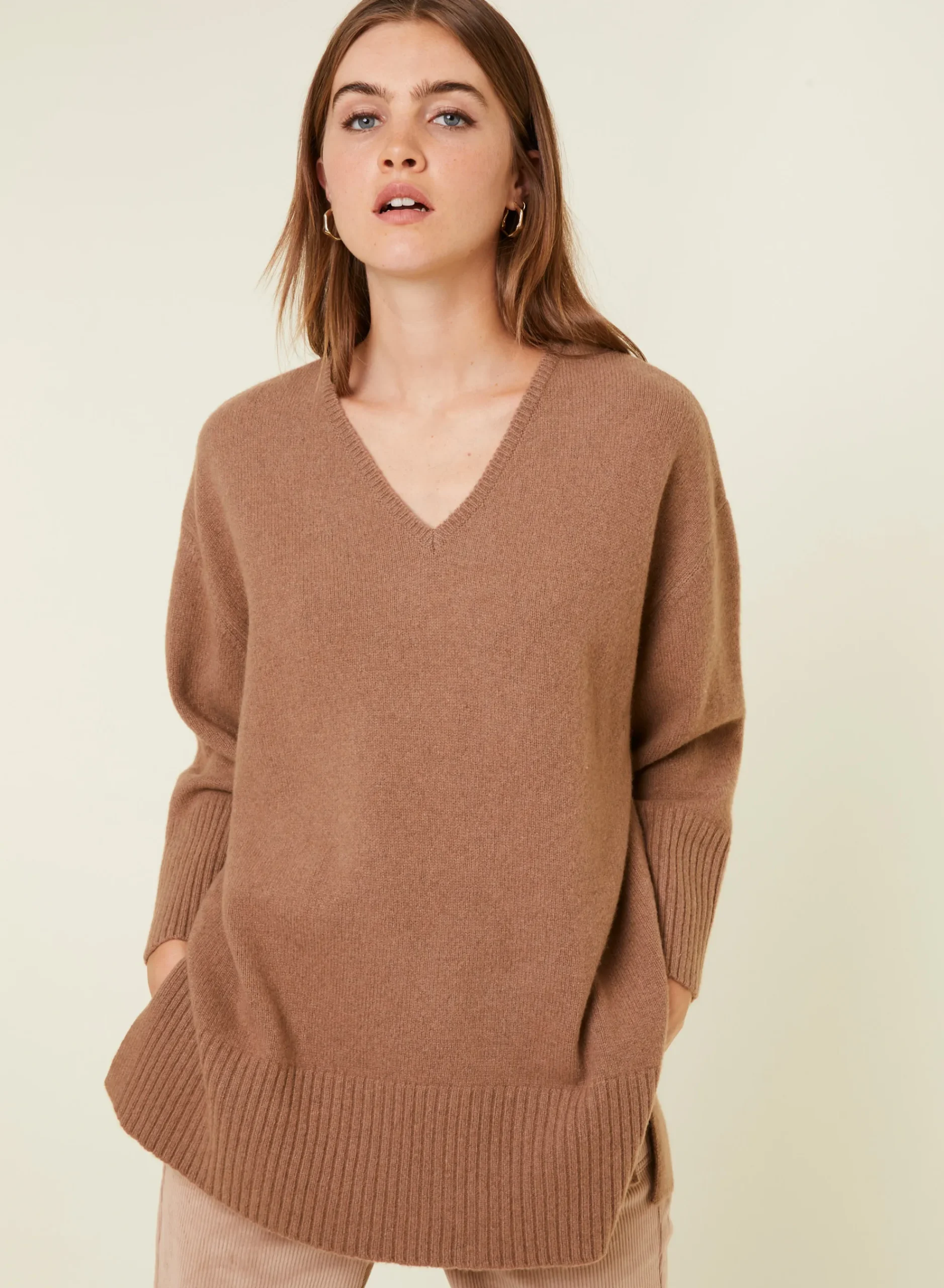 Completez Votre Vestiaire Avec Notre Pull Manches Longues Col V En Cachemire Et Laine Recycles Tricote Dans Nos Ateliers. Ce Modele Oversized Presente Une Emmanchure Basse Et 2 Grande Fentes De Chaque Cote. De Belles Finitions Larges Bords Cotes En Bas De Manches Et De Vetement Pour Parfaire Votre Silhouette. Si Vous Hesitez Entre Deux Tailles, Nous Vous Conseillons D’Opter Pour La Taille Inferieure.