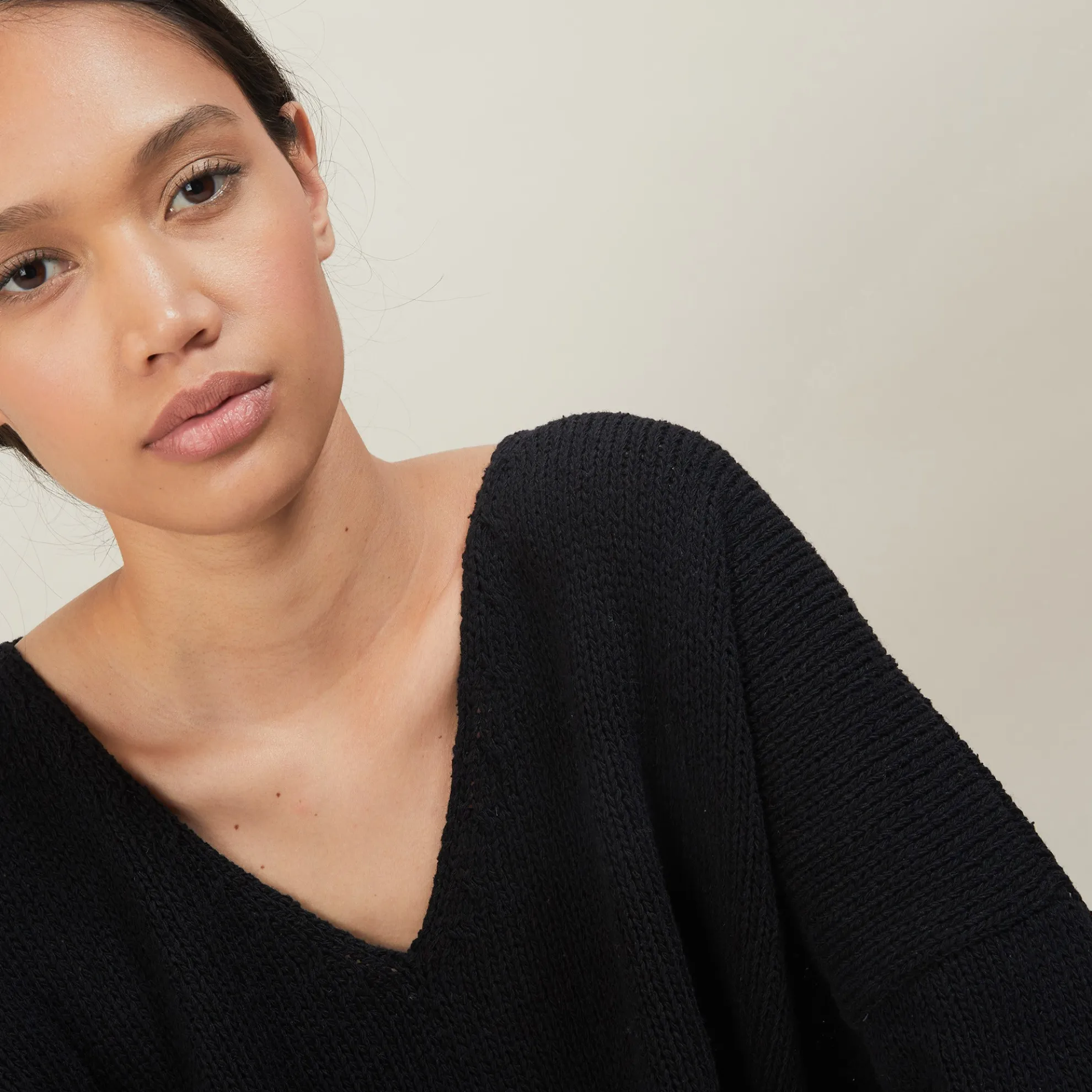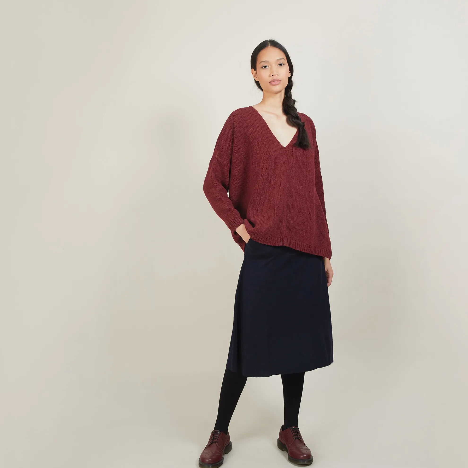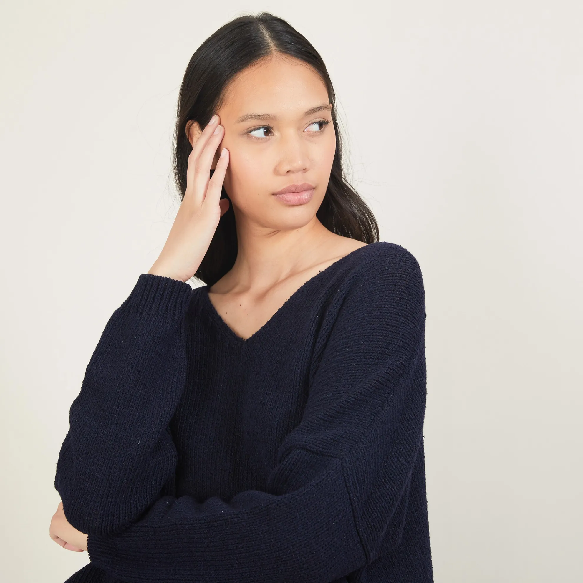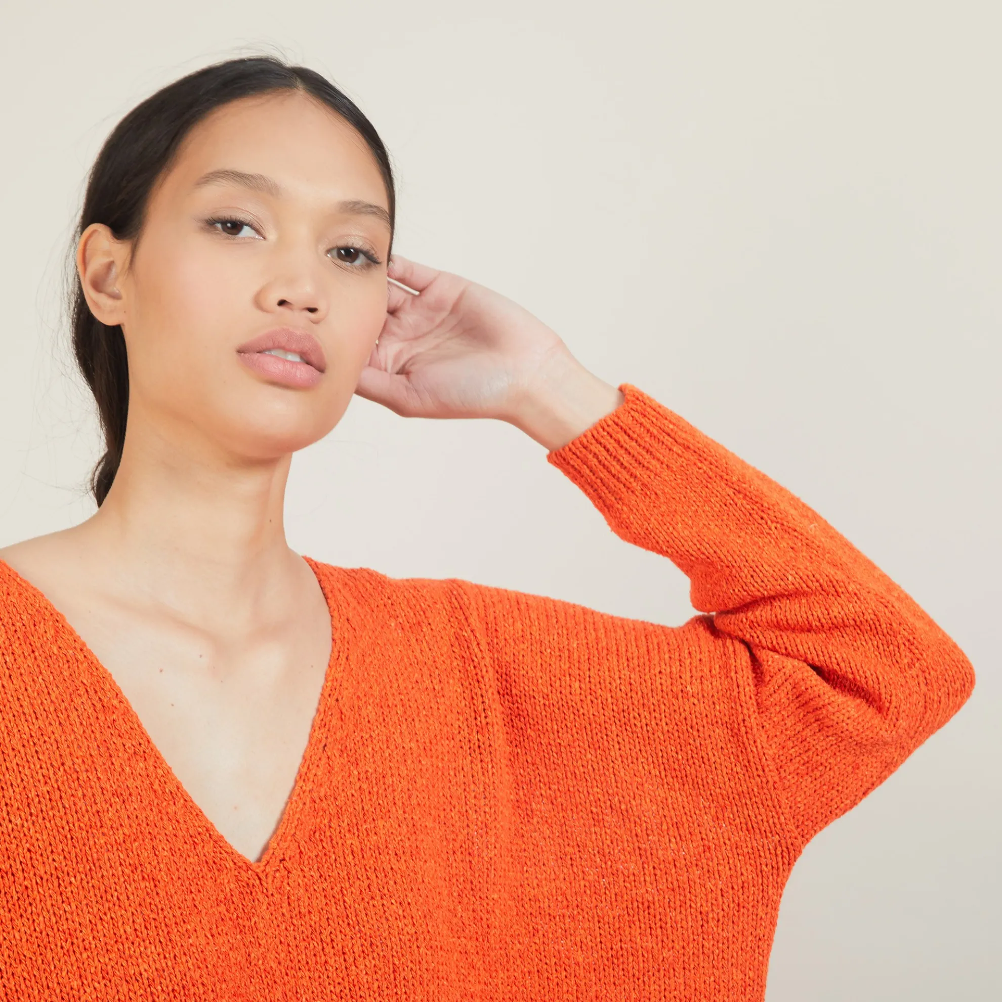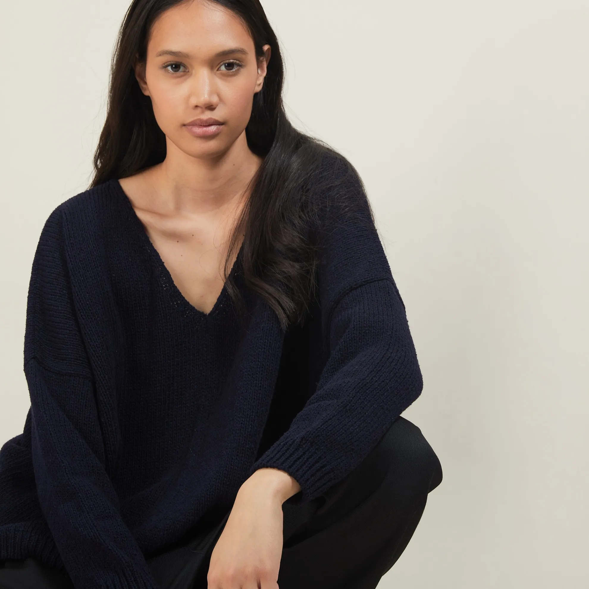 Pull Ample Col V Tricote En Melange De Laine Et Soie, La Matiere Phare De La Marque Poles. Coupe Oversize, Emmanchures Basses.