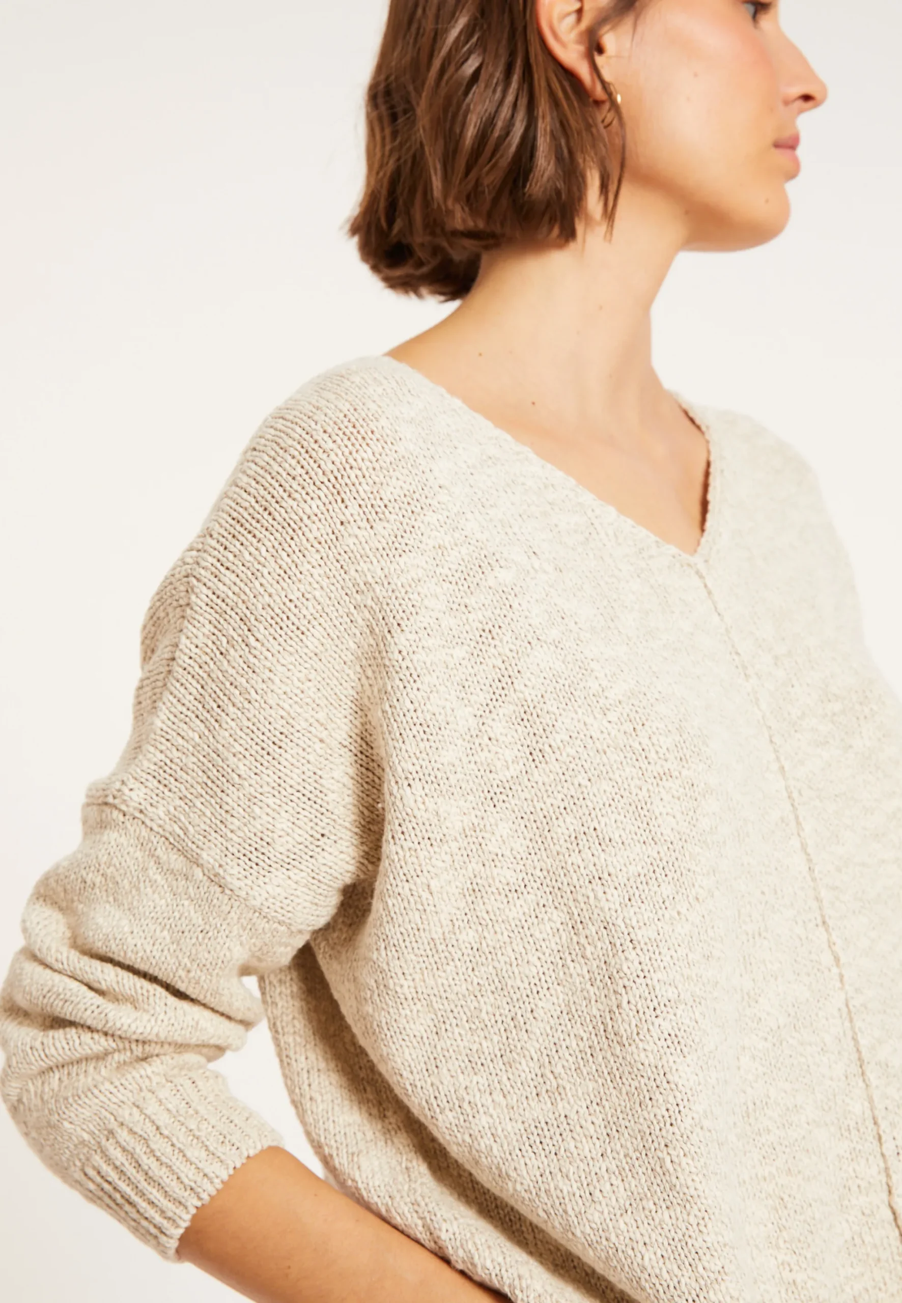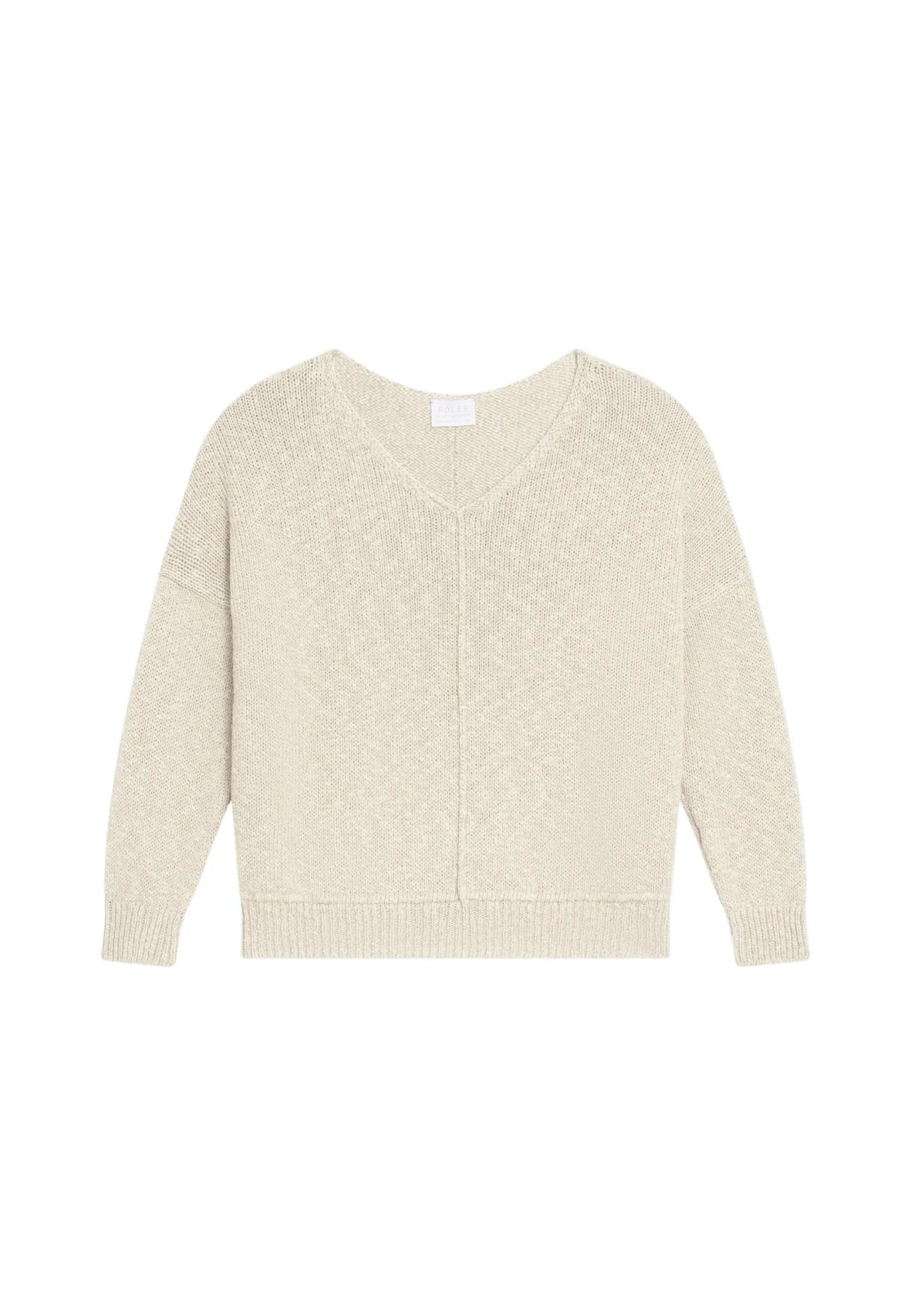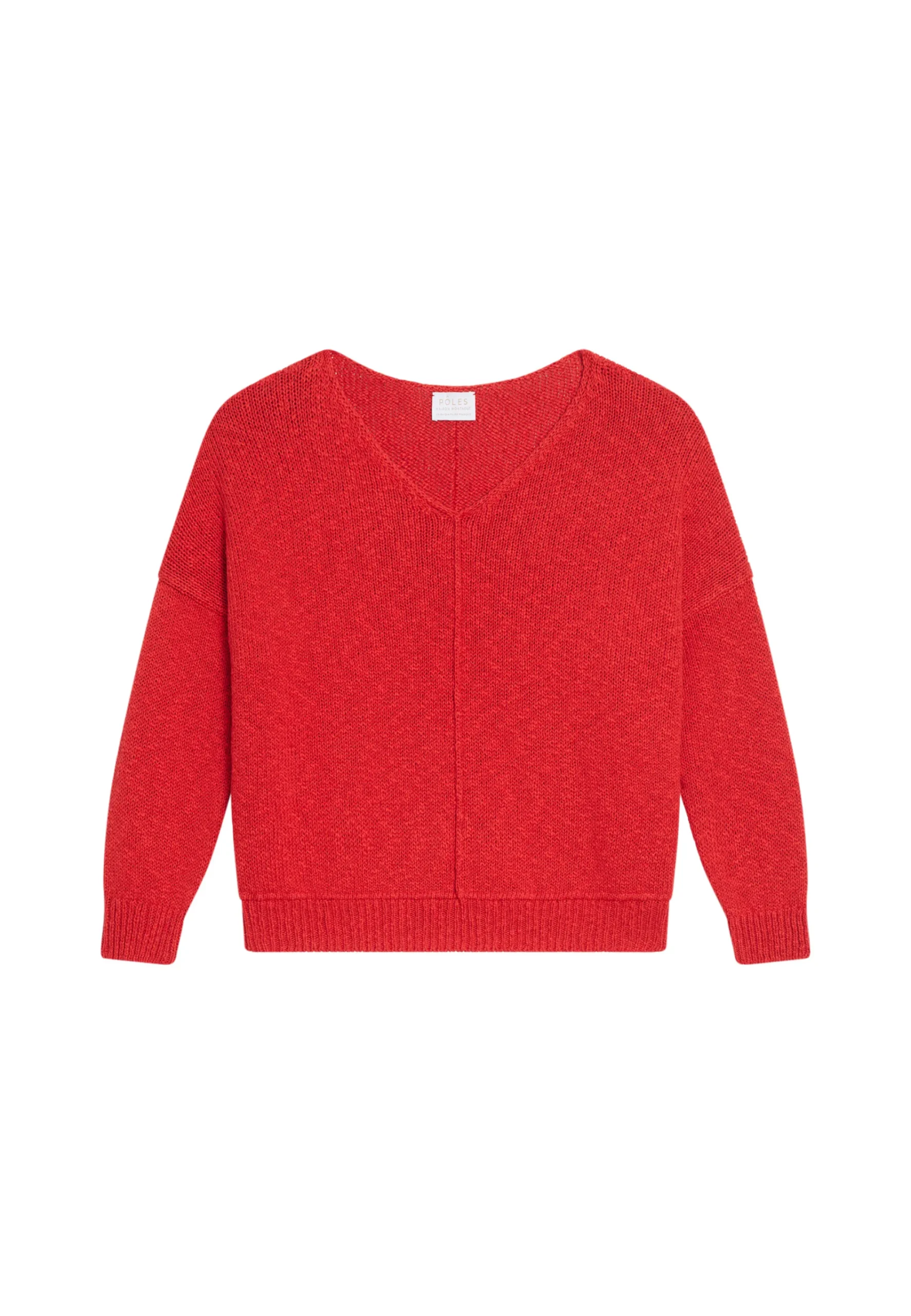 Pull A Encolure V Grosses Mailles Tricote Dans Nos Ateliers En Coton Et Lin. Sa Matiere Legere Et Sa Maille Aeree Apporte De La Legerete Au Pull. Une Touche D’Originalite Avec Les Coutures Legerement Visibles Sur L’Exterieur. Coupe Ample, Emmanchures Basses Pour Une Aisance Extreme, Notre Modele Possede Deux Petites Fentes De Chaque Cote.