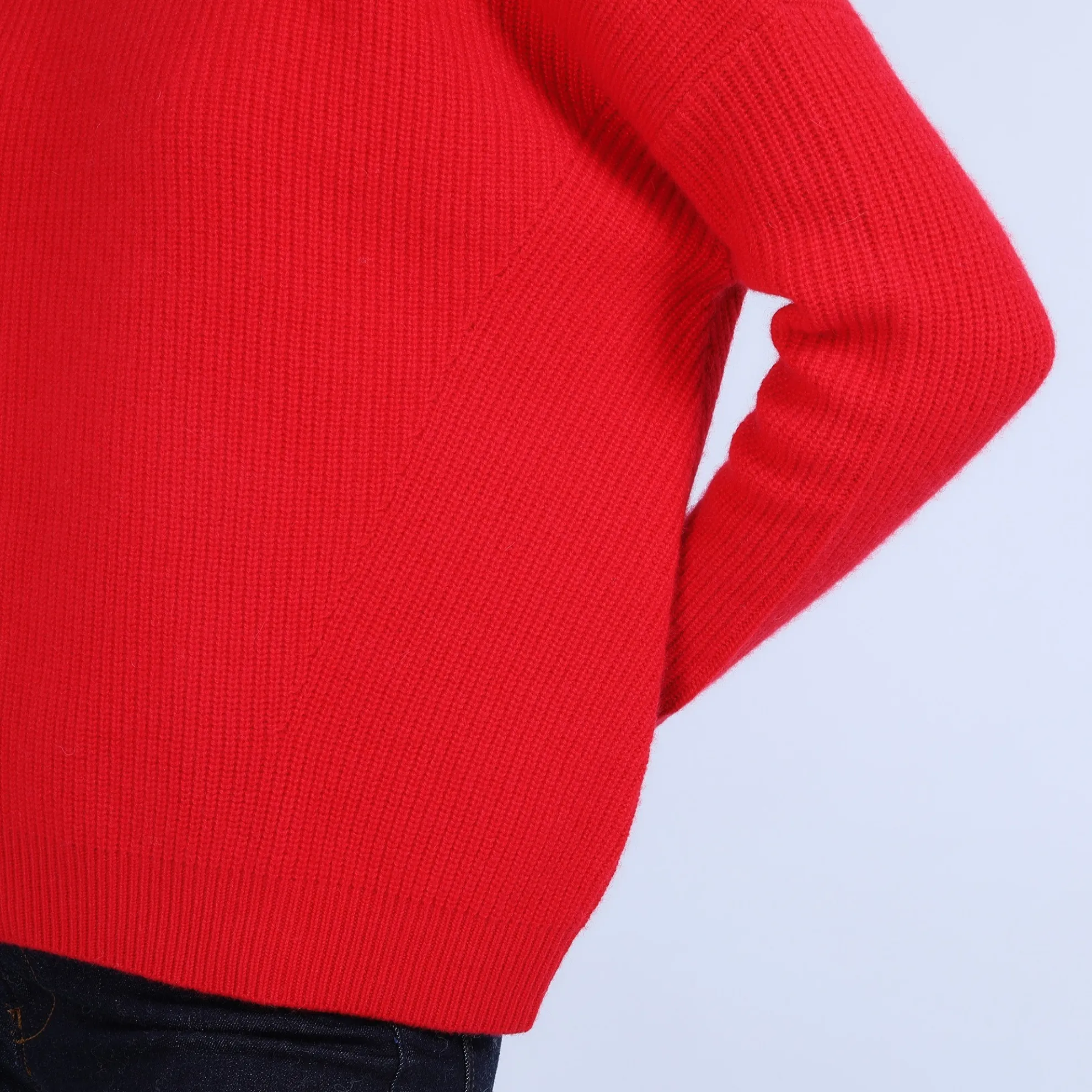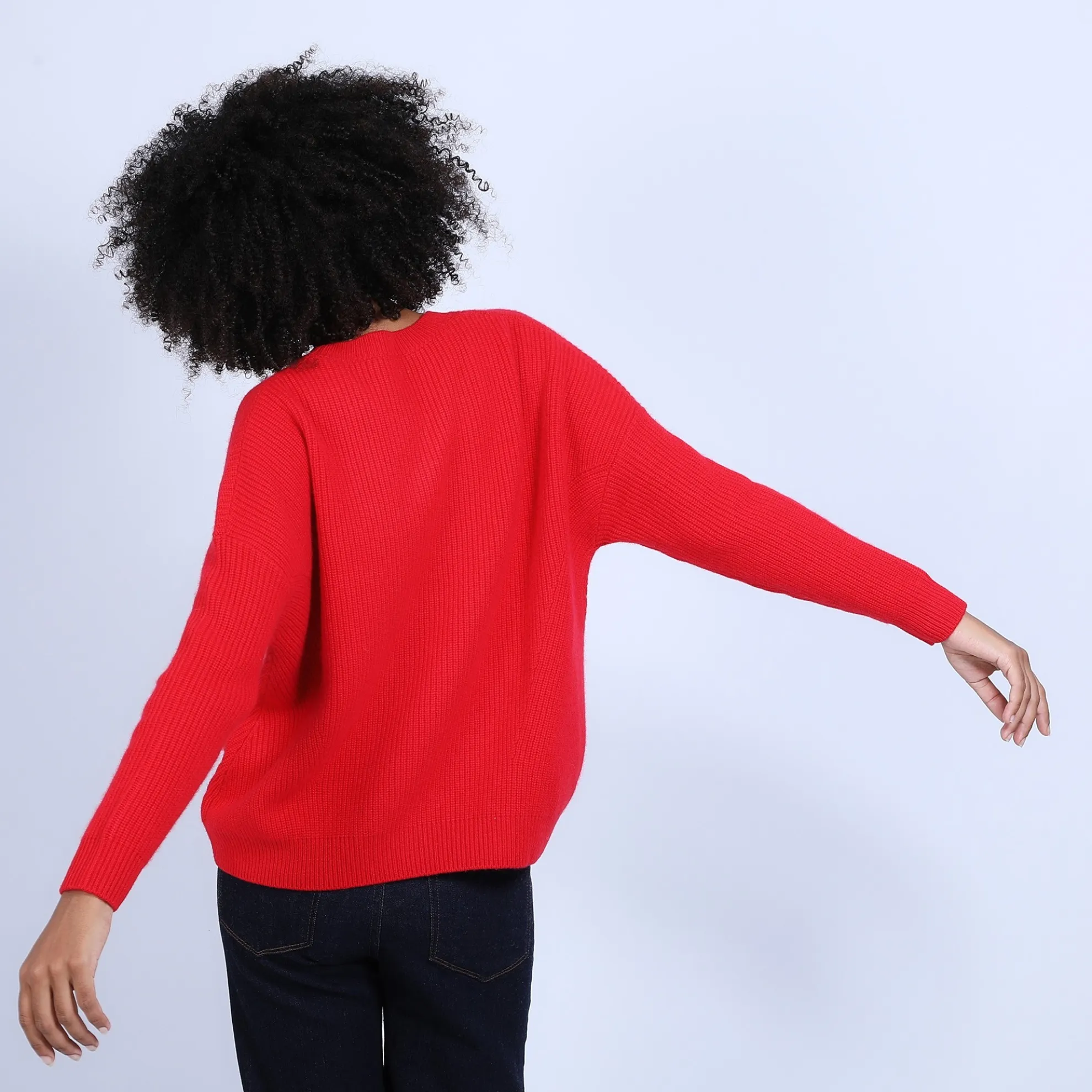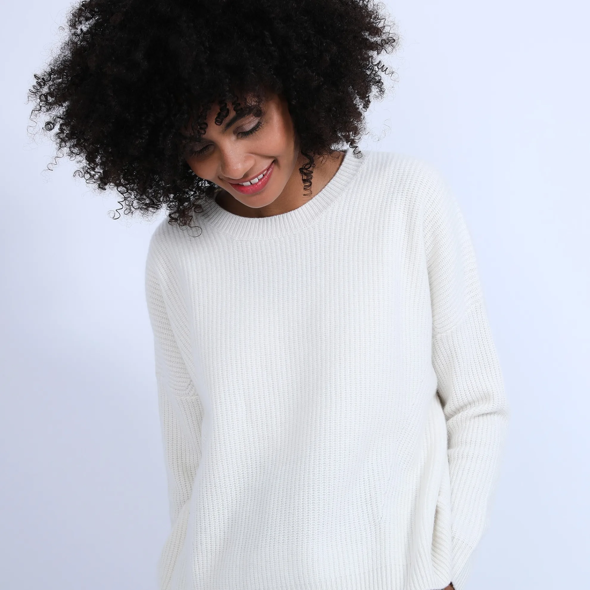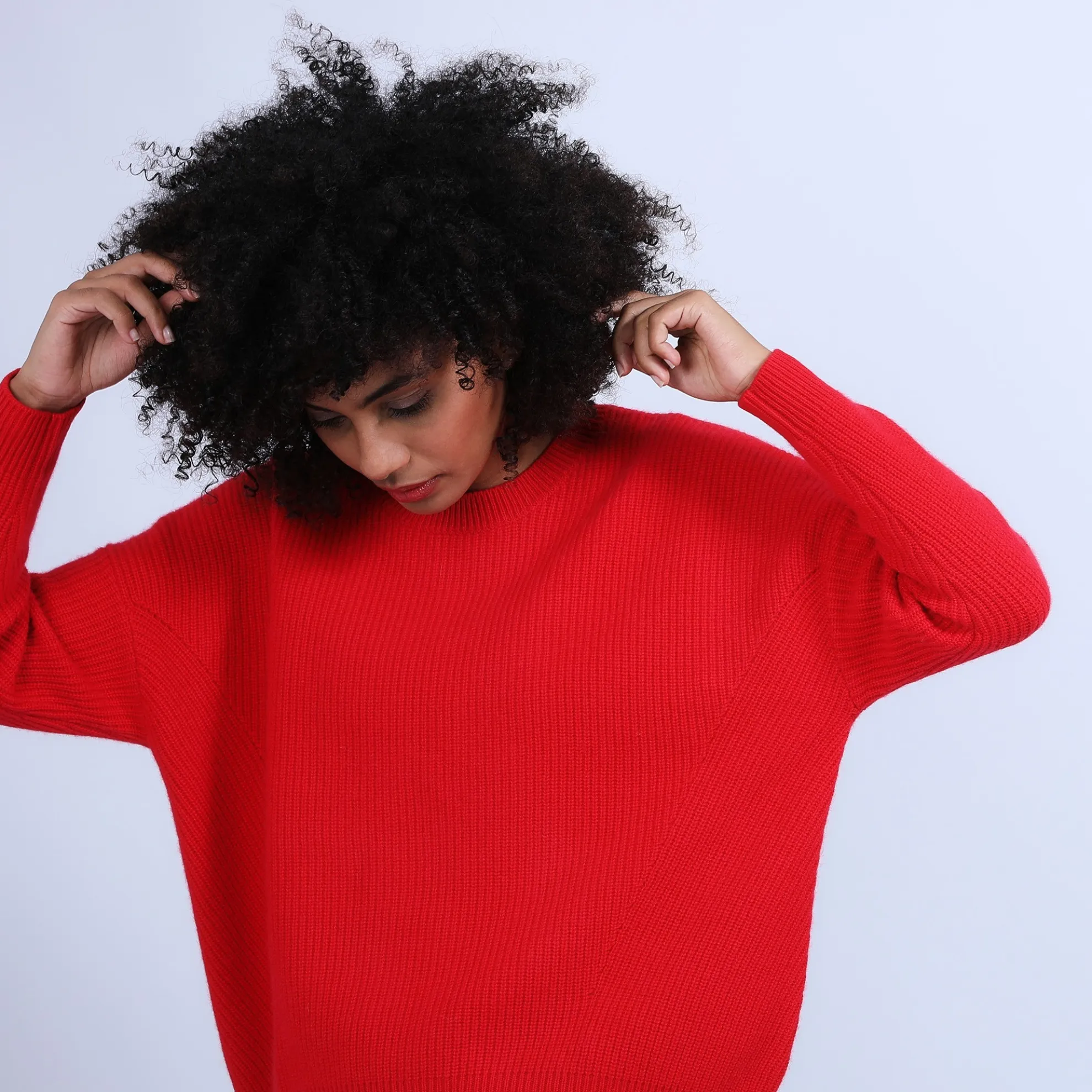 Pull Col Rond En Cachemire. Forme Boule Tres Sympa. Jeux De Cotes Dans Des Directions Opposees. Style Casual Et Actuel. Une Jolie Piece Pour Completer Votre Dressing. Couleurs Intenses Et Profondes, On Adore !