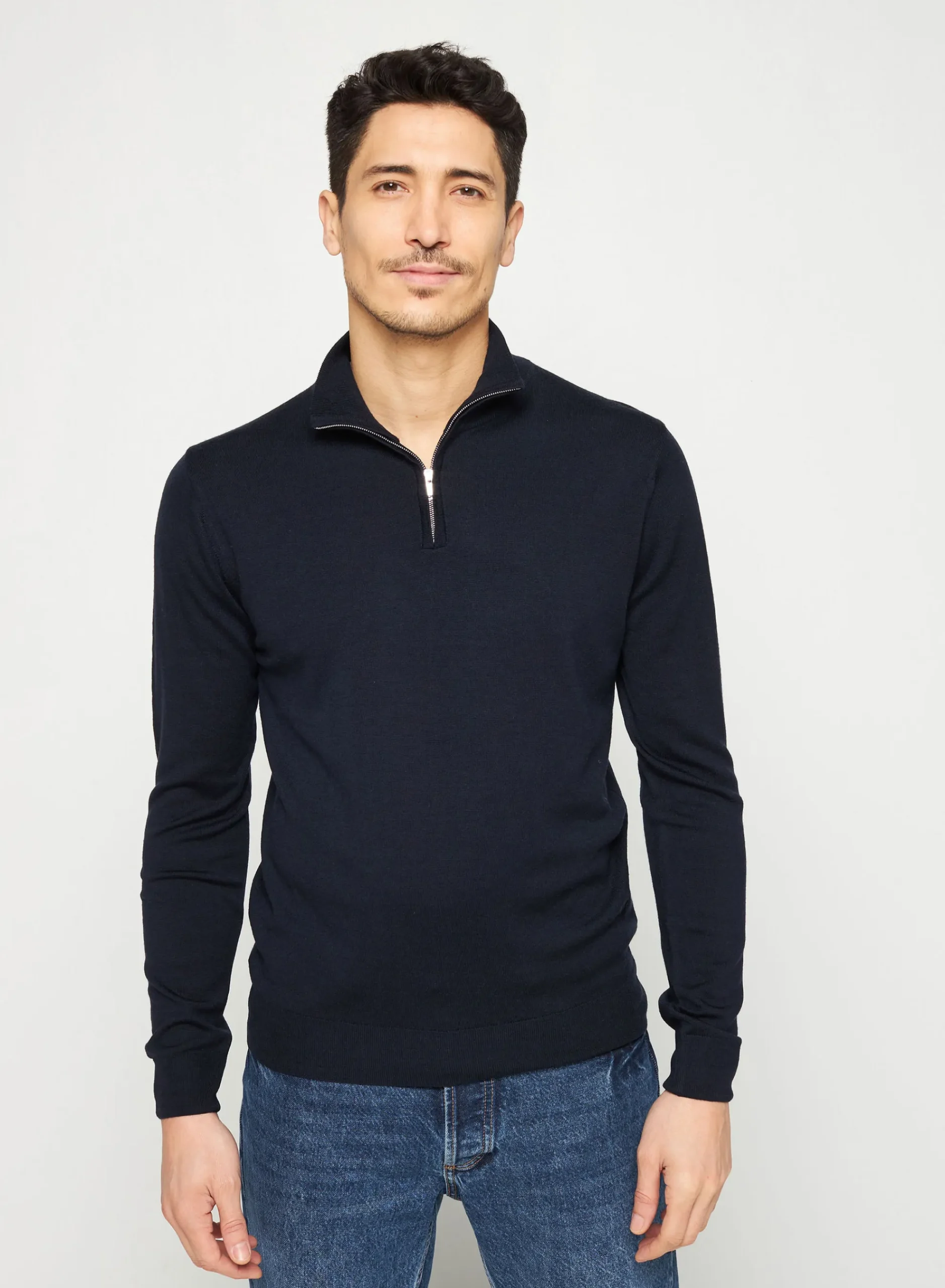 Ce Pull Col Montant Zippe Est Un Indispensable Du Dressing Masculin. Son Col Montant Tricote En Fines Cotes Peut Se Porter Ouvert Ou Ferme Grace A Son Zip De Couleur Argentee. Il Est Tres Moderne, Finitions Bord Cotes Au Bas Du Vetement Et Aux Poignets.