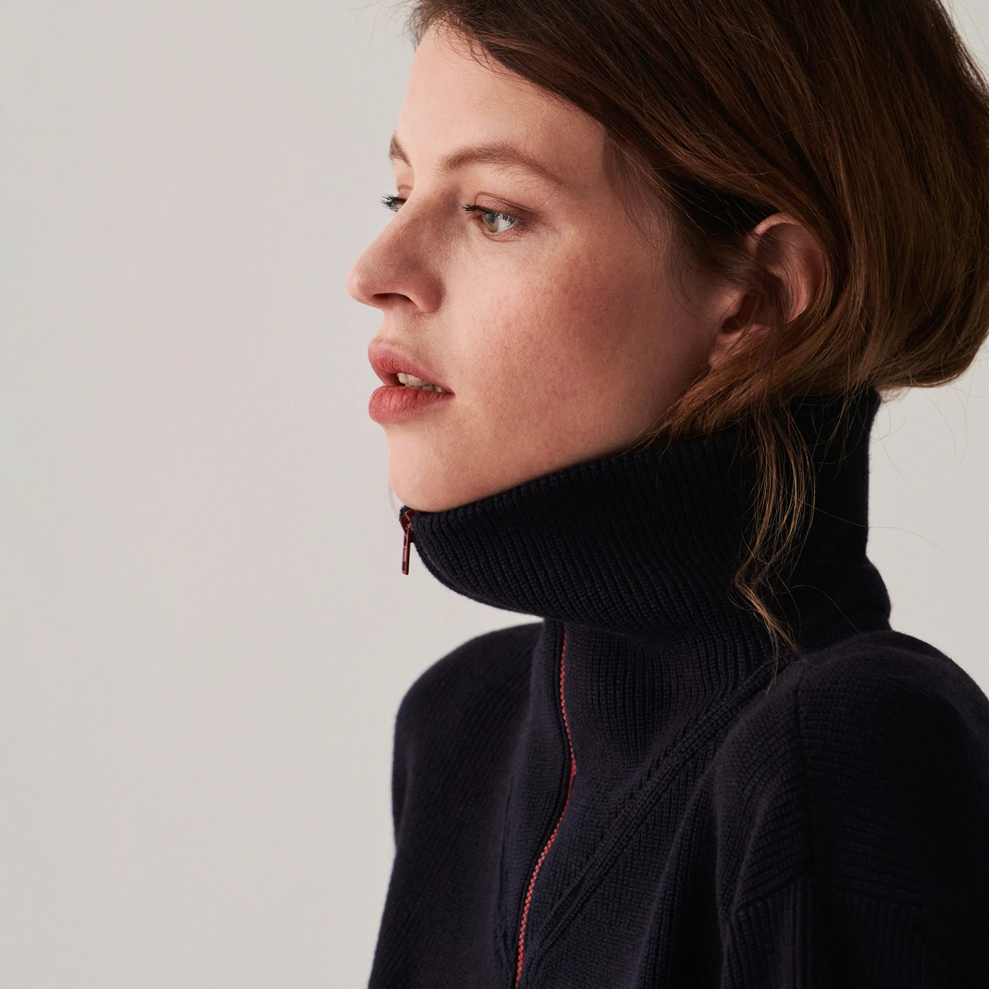 Pull Col Camionneur En Coton Cachemire Grosse Maille Point Jersey Tricote Au Portugal. Coupe Ample, Emmanchure Basse. Bas De Pull Et De Manches Resserres. Col Refermable Par Un Zip En Contraste Couleur. Si Vous Hesitez Entre Deux Tailles, Preferez La Taille En Dessous.