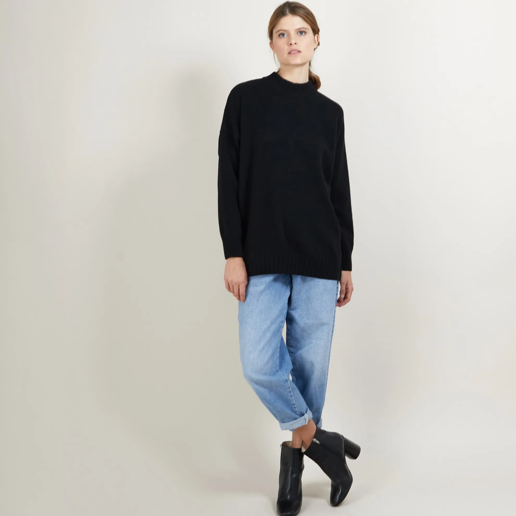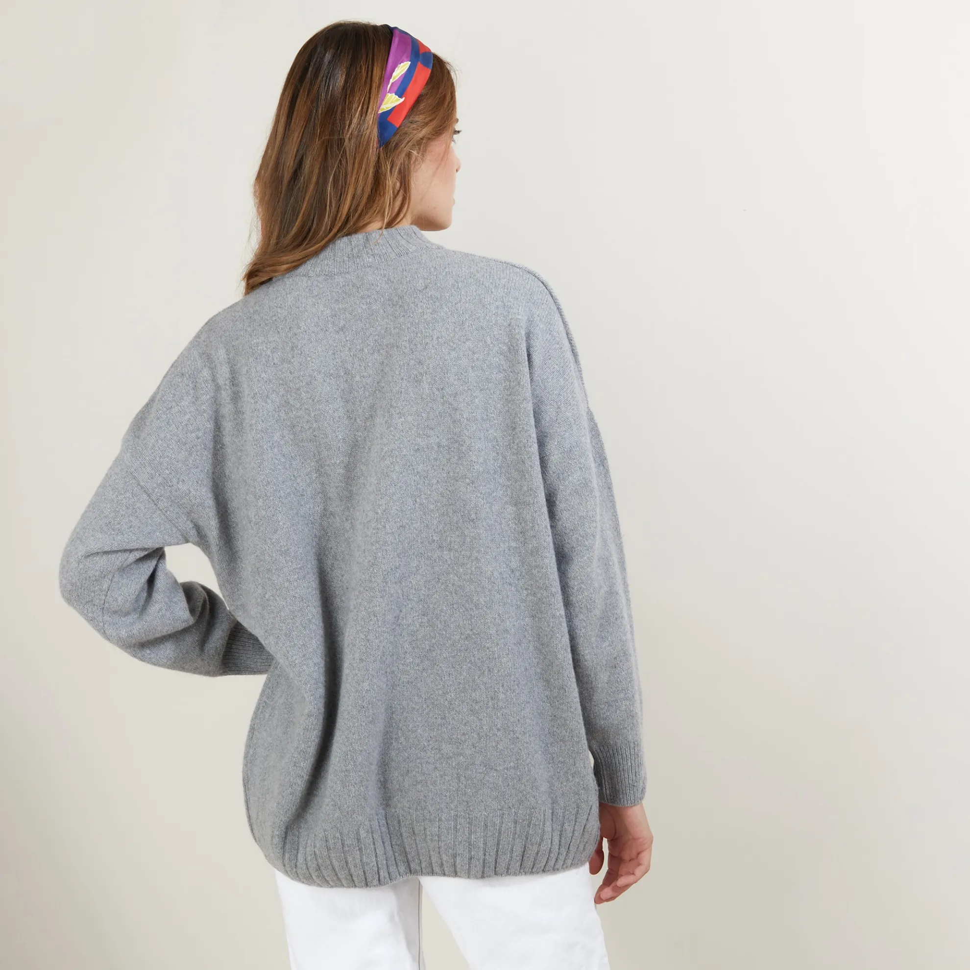 Long Pull Oversize Tricote En Cachemire Et Laine Recycles. Coupe Large Et Bords Cotes Au Niveau Du Col, Du Bas Du Vetement Et Des Manches. Faites-Vous Plaisir Avec Ce Joli Pull Qui Vous Accompagnera Tout Au Long De La Saison.