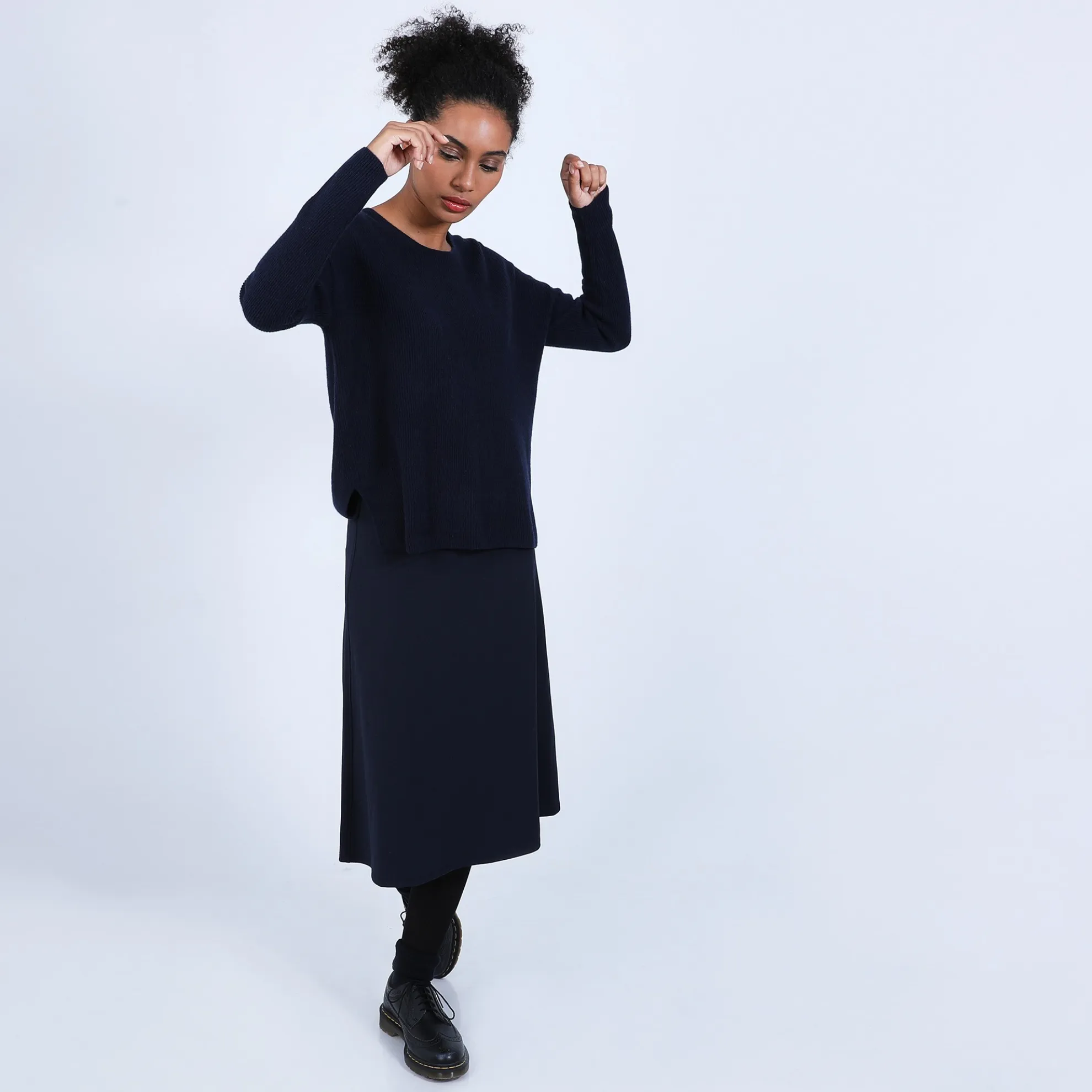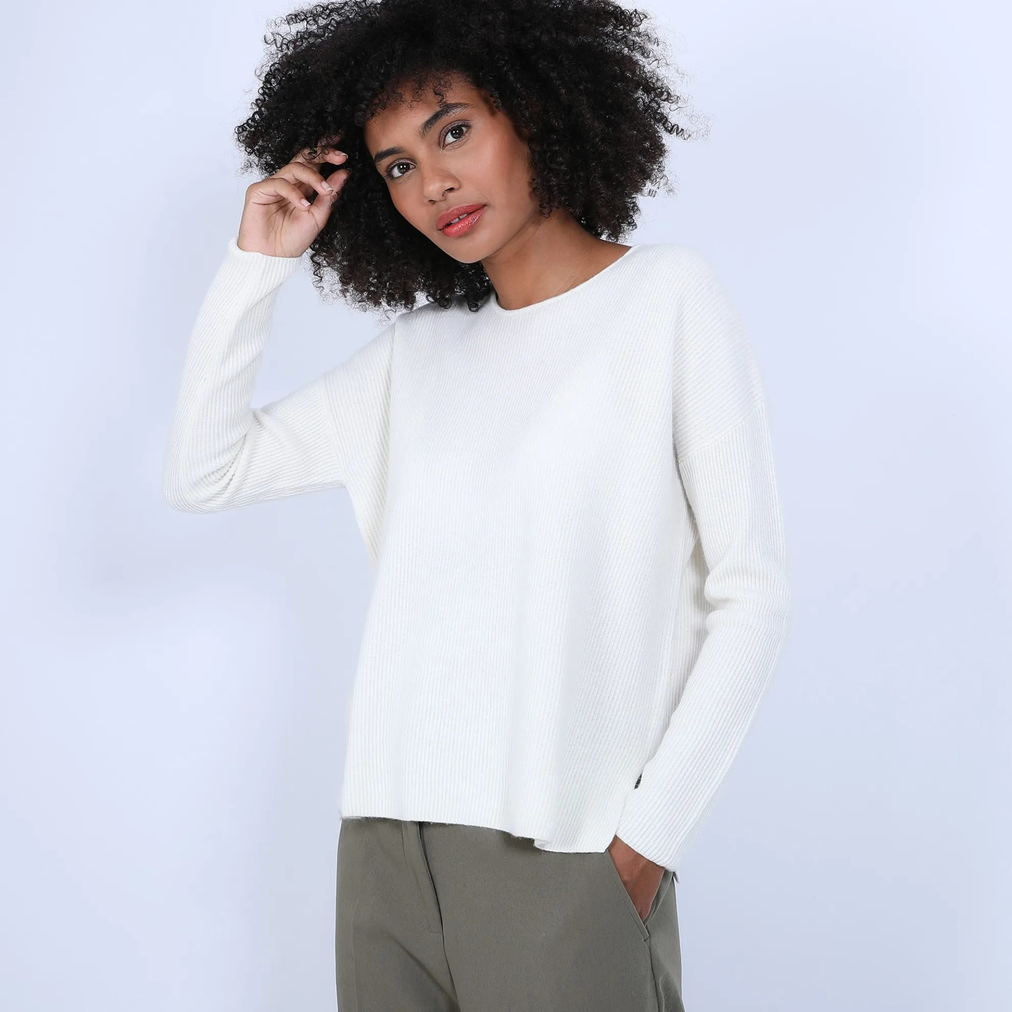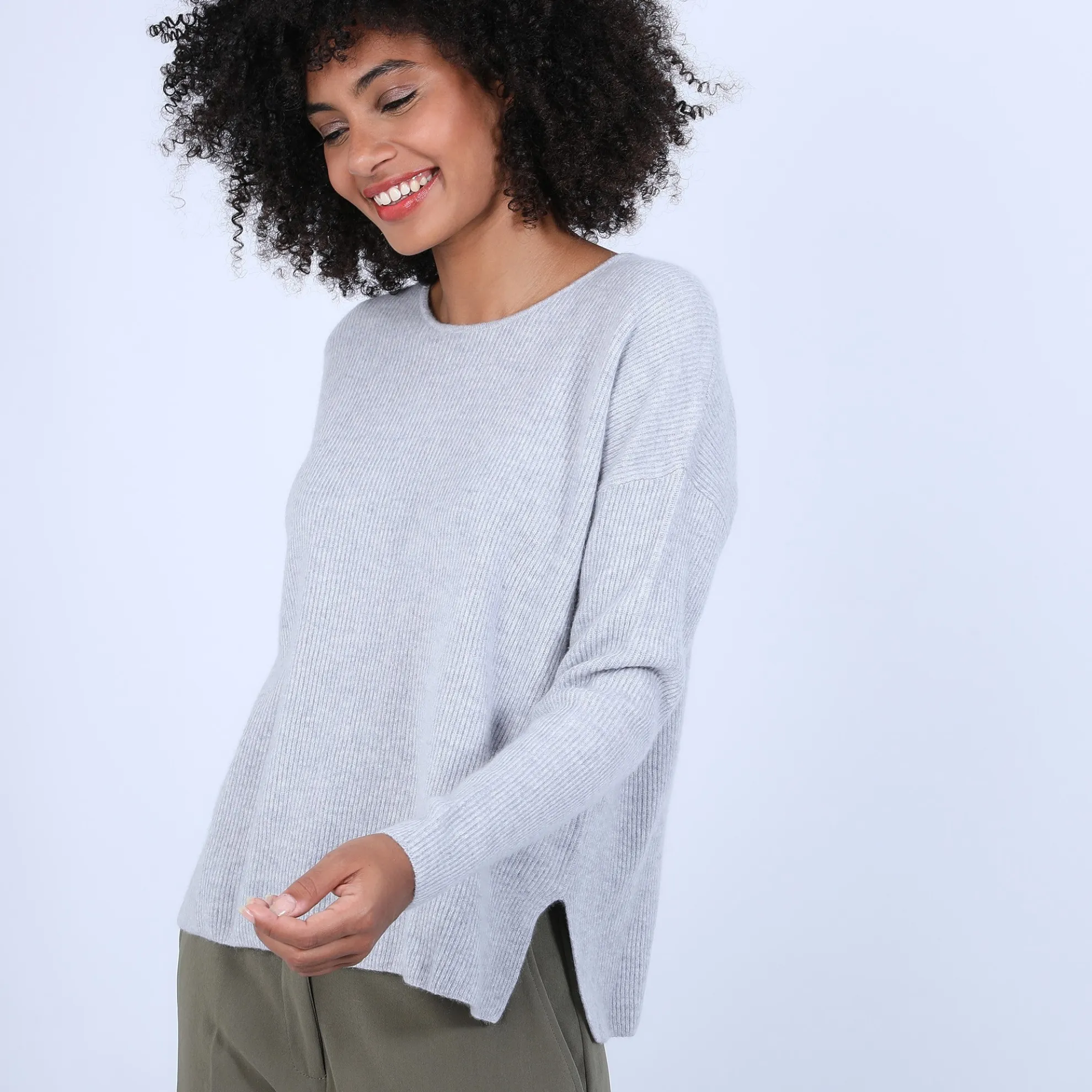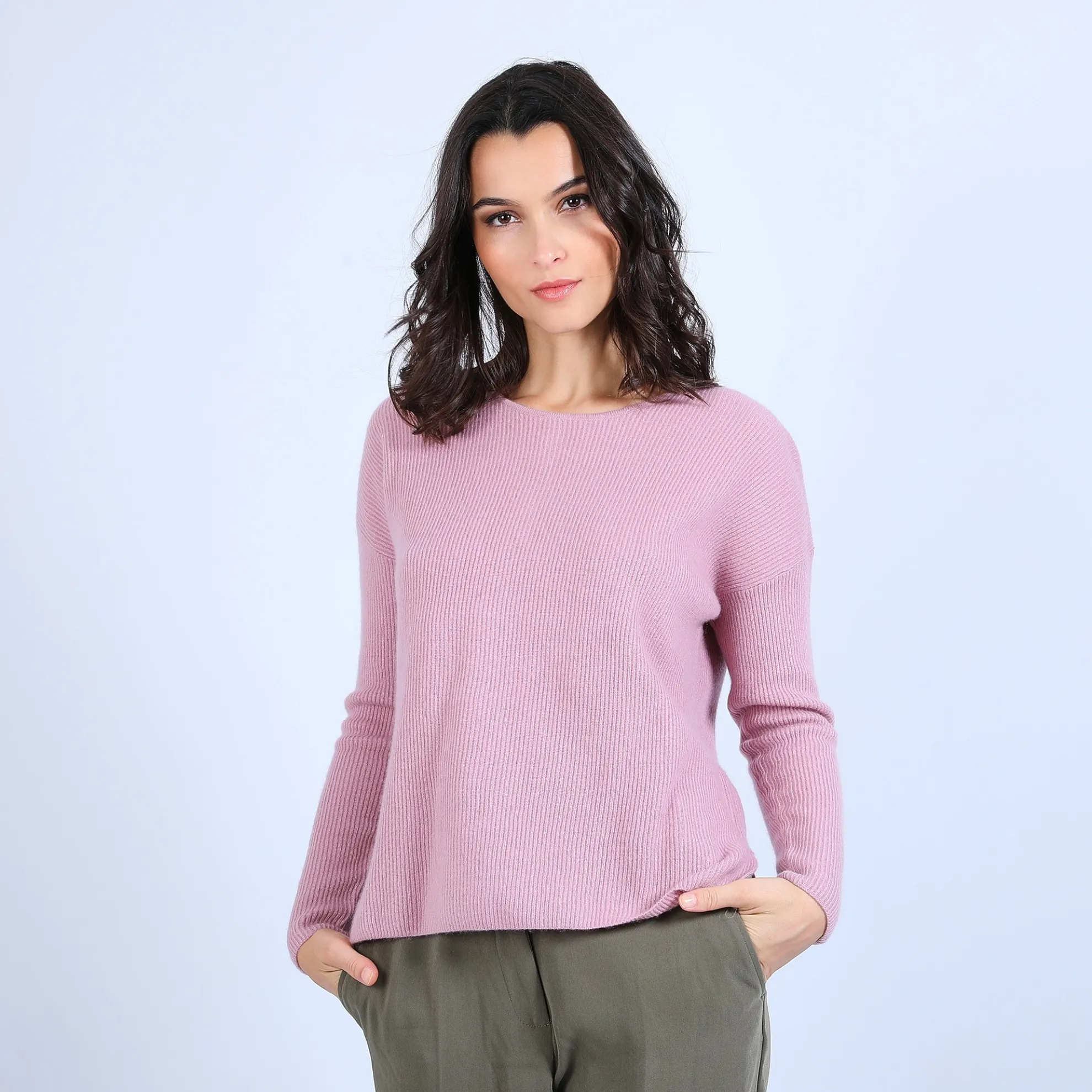 Pull Col Ouvert En Cachemire Pour Femme. Coupe Droite Facile A Porter. Maille Tricotee En Cotes Anglaises Donannt Du Relief A La Matiere. Une Fente De Chaque Cote Sur Les Hanches. Boutonniere Dans Le Dos. Coloris Tendance Pour Cet Hiver.