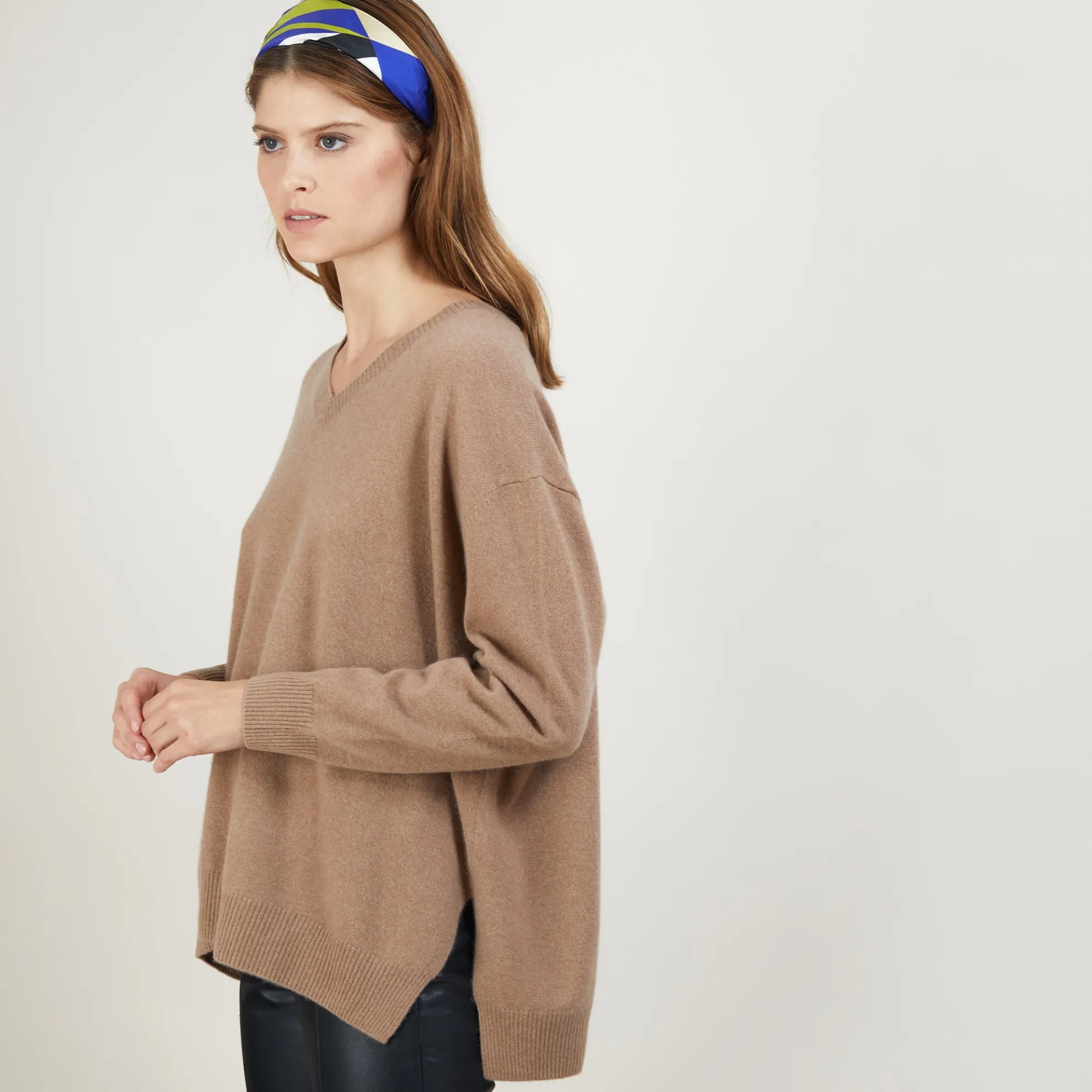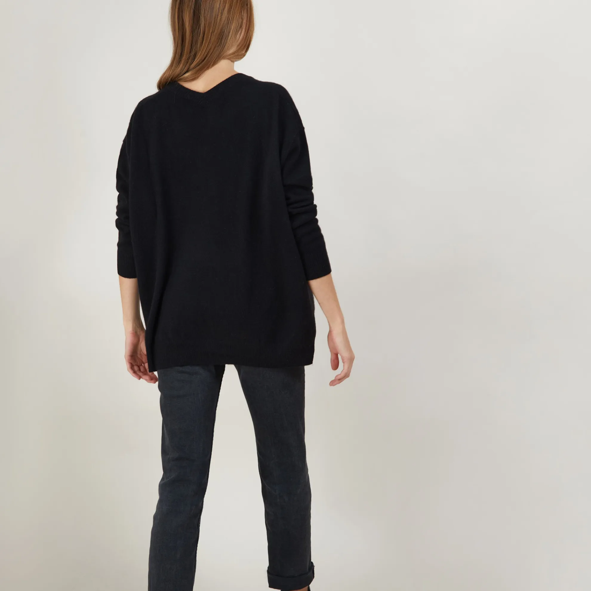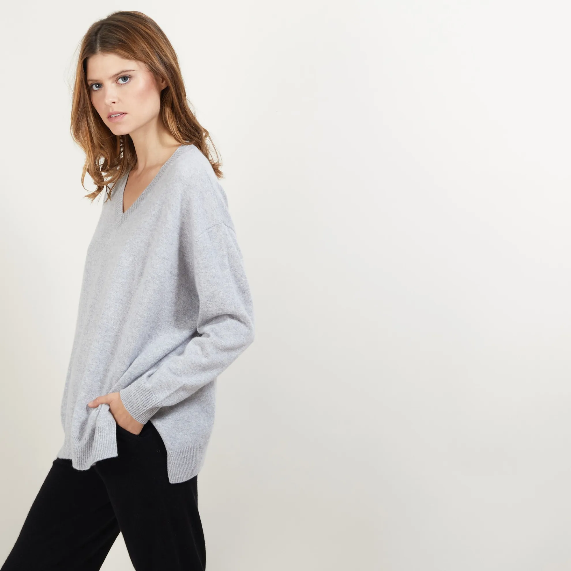 Pull Oversize En Cachemire Avec Un Col V A L’Avant Et A L’Arriere Du Pull. Deux Fentes Sur Les Cotes Pour Apporter Une Touche D’Originalite. Ce Pull Est Parfait Pour Se Sentir A L’Aise Toute Au Long De La Journee.