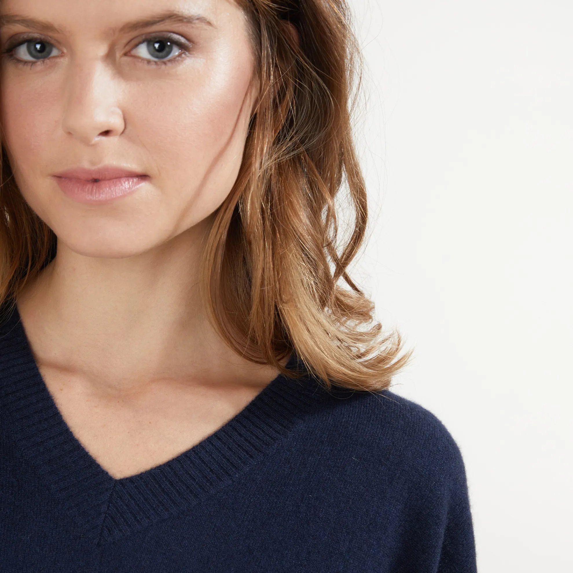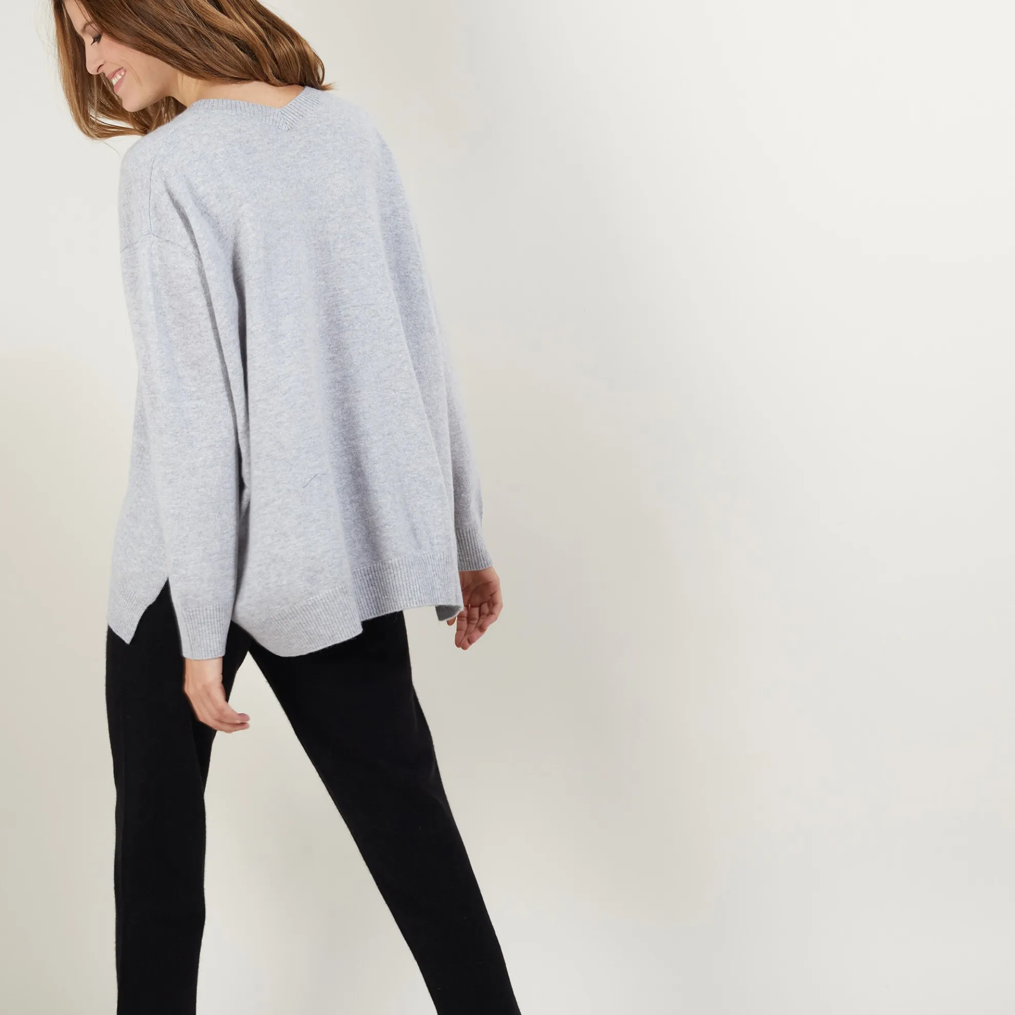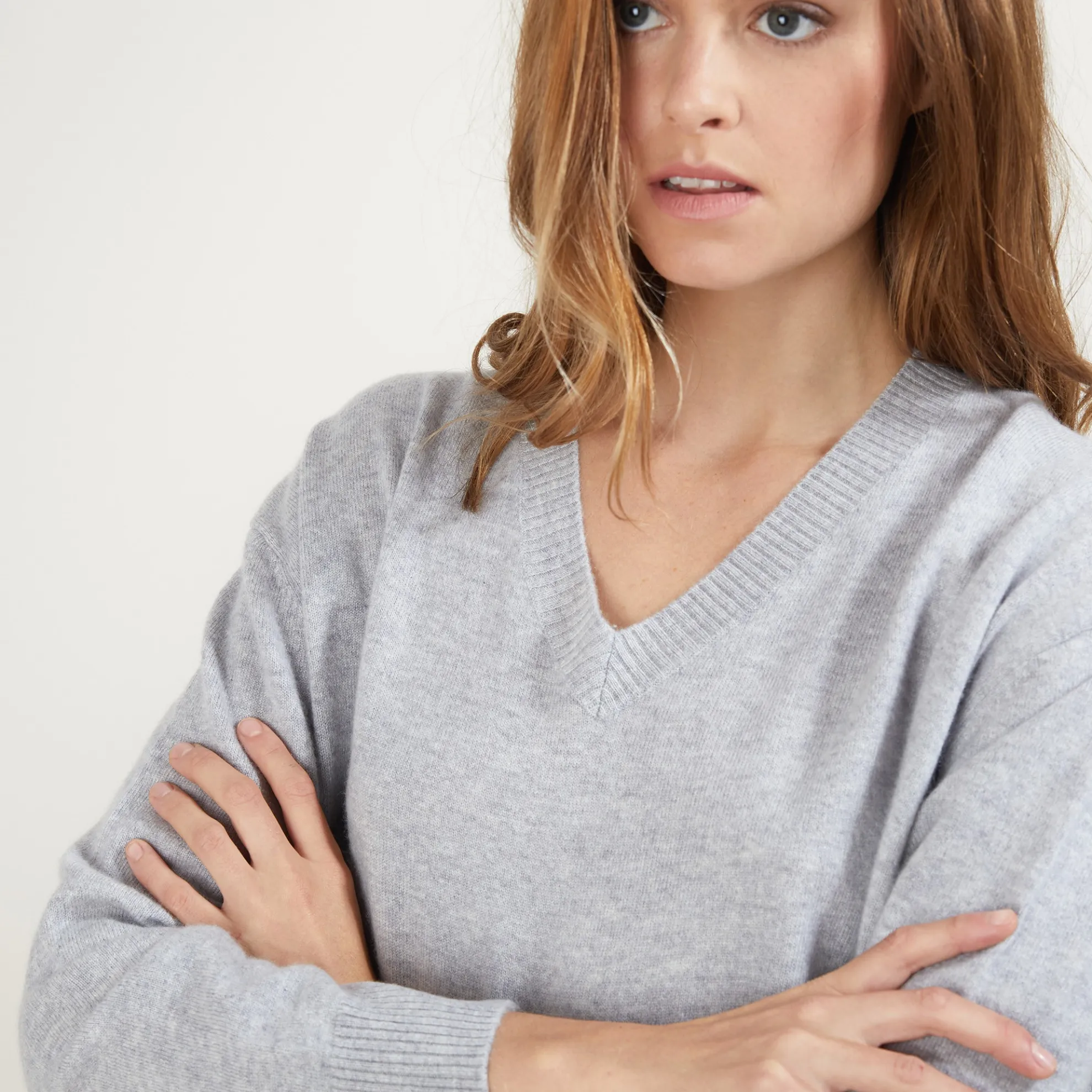 Pull Oversize En Cachemire Avec Un Col V A L’Avant Et A L’Arriere Du Pull. Deux Fentes Sur Les Cotes Pour Apporter Une Touche D’Originalite. Ce Pull Est Parfait Pour Se Sentir A L’Aise Toute Au Long De La Journee.