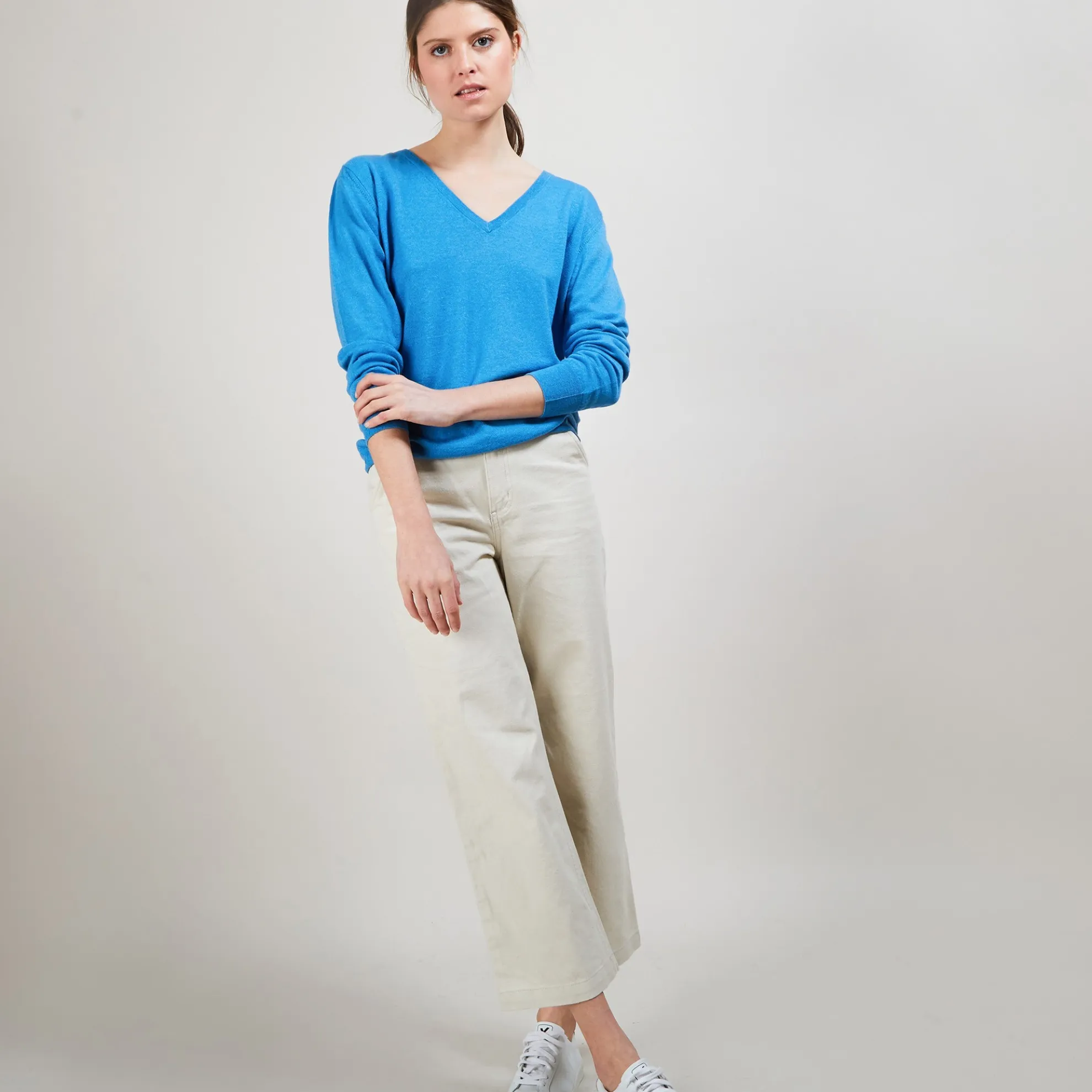 Pull Col V Femme En Cachemire Et Lin. Un Intemporel A Avoir Dans Son Dressing. Le Melange Cachemire Et Lin Apporte Une Matiere Tres Douce Et Legere. C’Est Un Pull Ideal Pour La Mi-Saison. Tricote Dans Nos Ateliers.