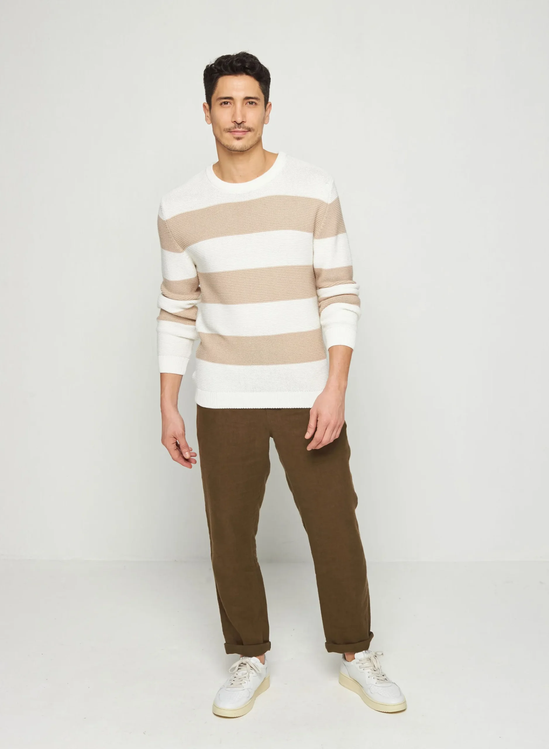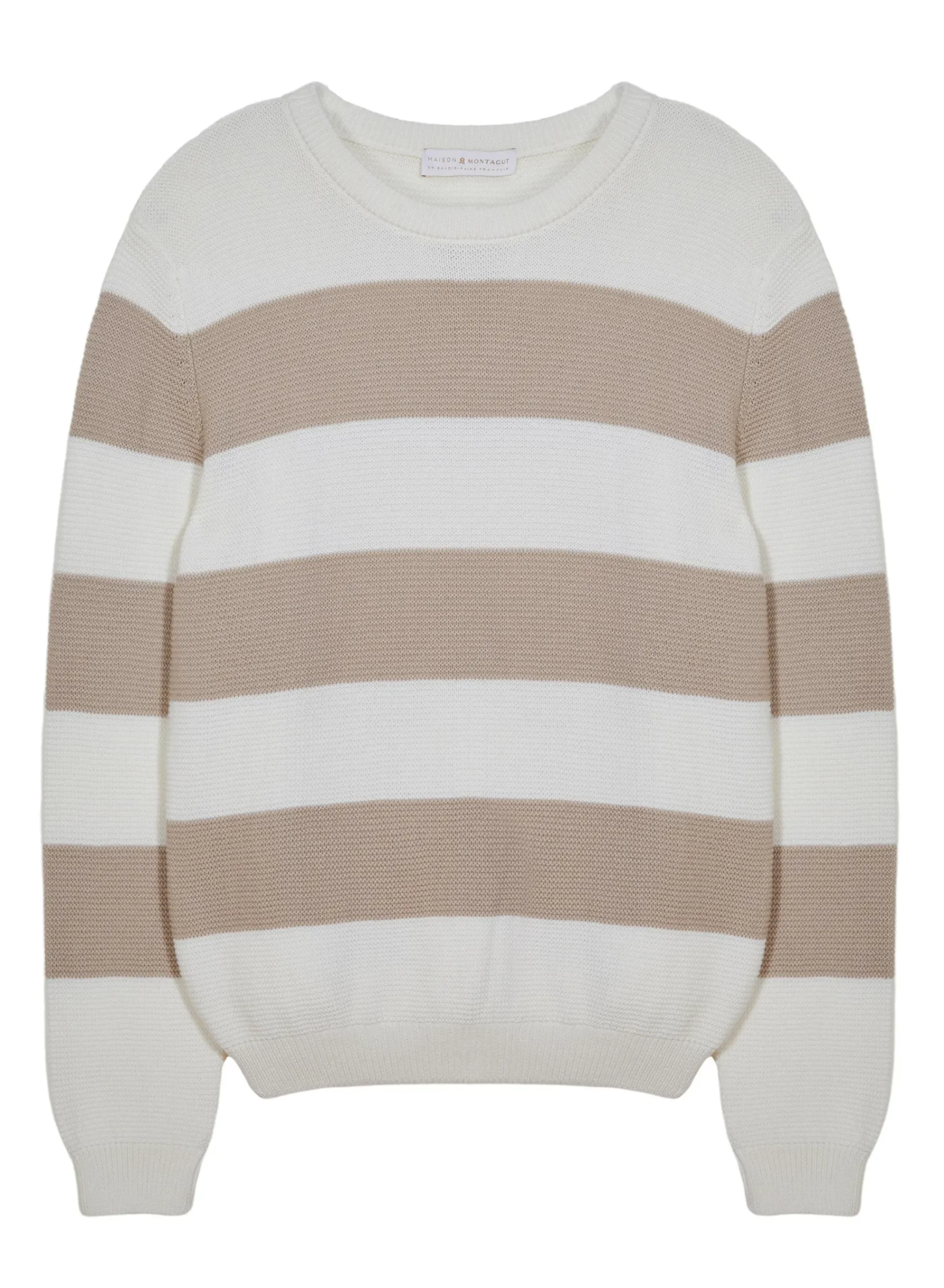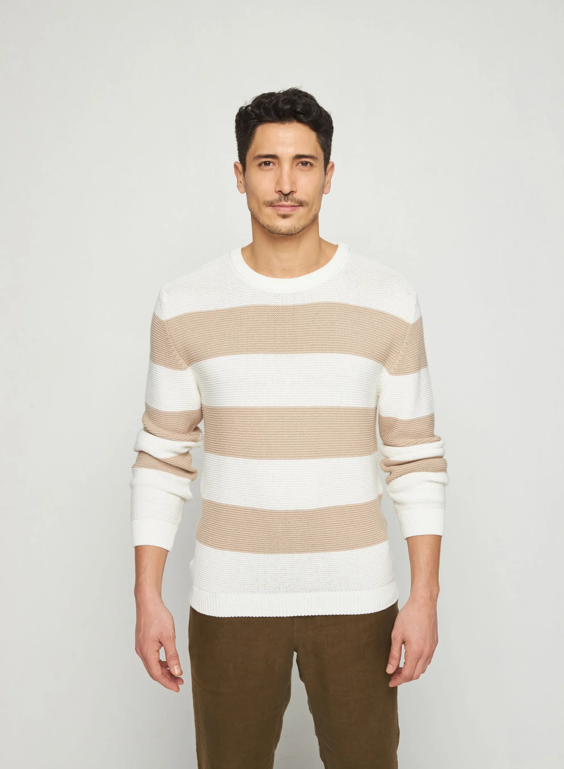 Pull Col Rond Avec Grosses Rayures Tricote En Coton Bio. Un Modele Jeune Et Colore Decline Dans Differents Coloris Pour Varier Les Looks Selon Votre Humeur. Une Coupe Simple Et Ajustee Pour Un Style Tres Moderne. Une Valeur Sure Pour Durer Dans Votre Dressing Avec Son Coton Doux De Qualite.