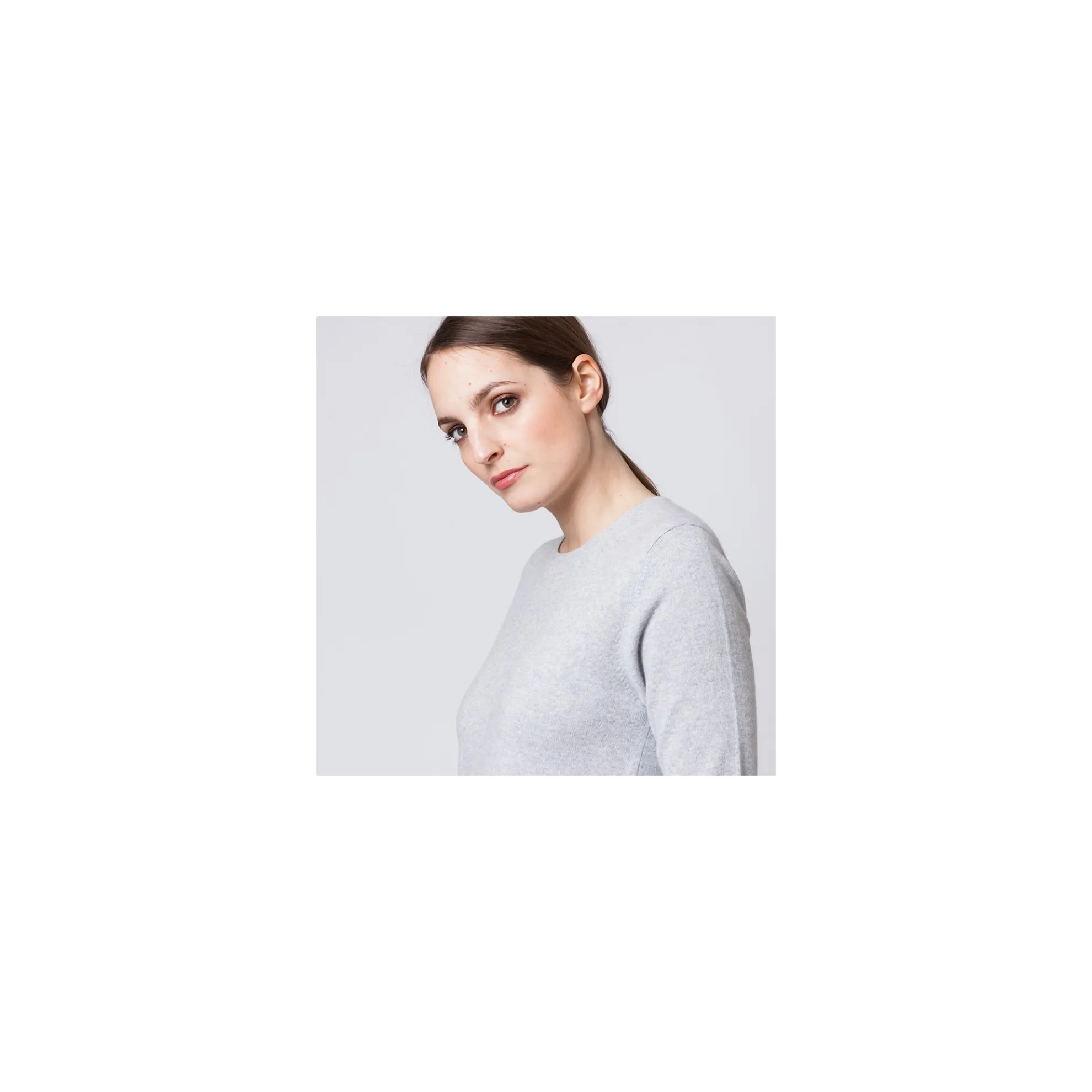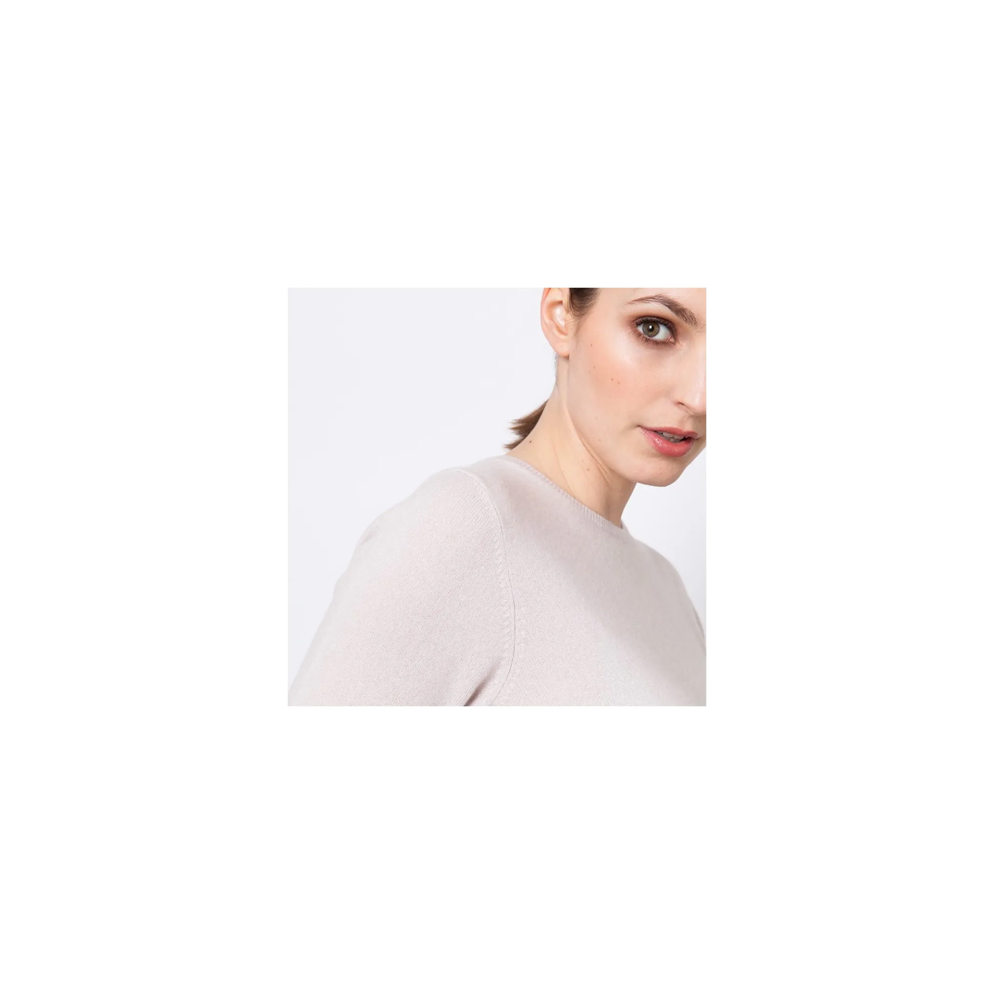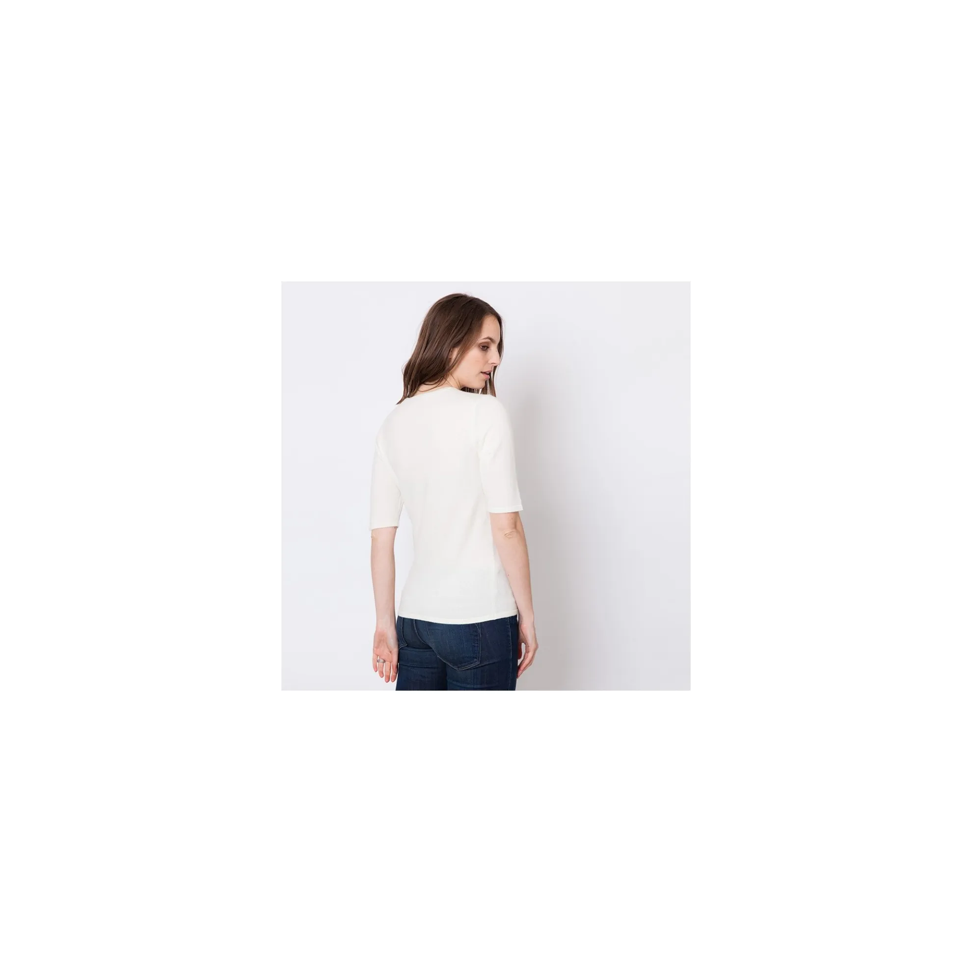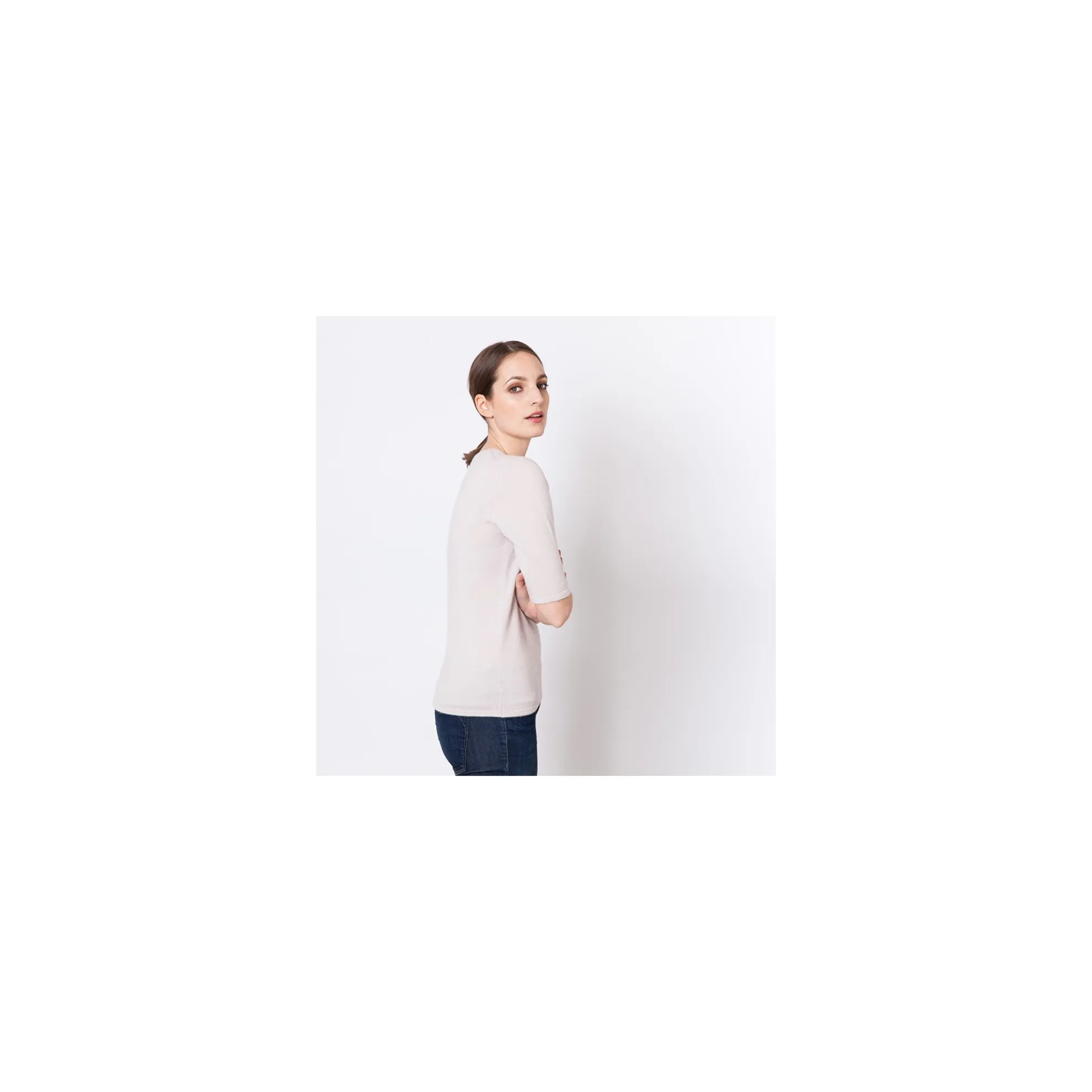 Petit Pull En Cachemire Pour Femme Avec Manches Coudes. Cette Longueur De Manches Est Ideale Pour Porter Ce Petit Pull En Twin Set Avec Le Cardigan Assorti Justine Sans Vous Sentir Serree Au Niveau Des Bras.