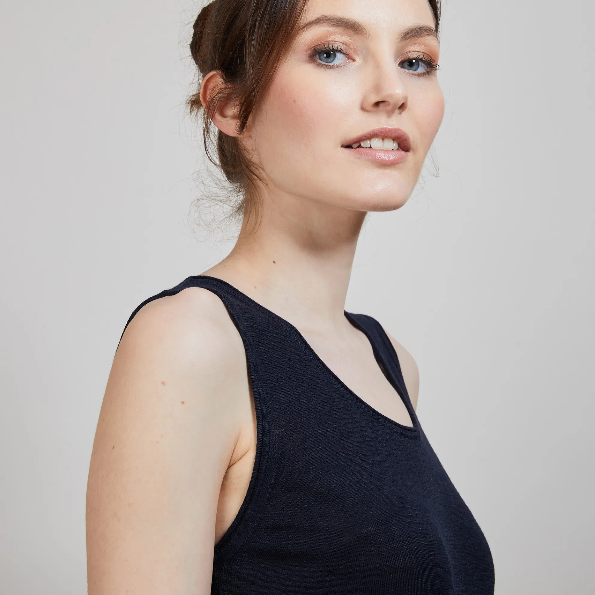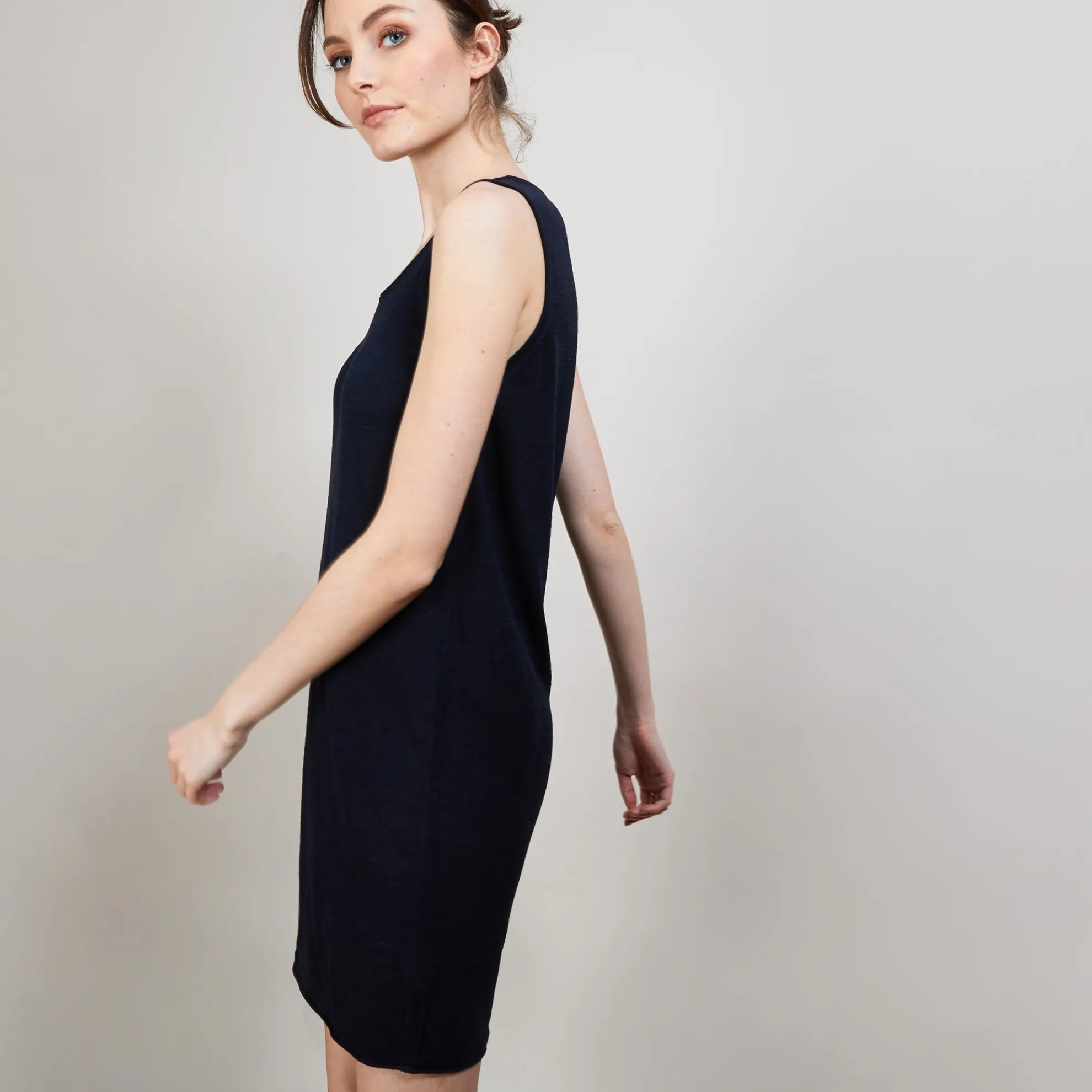 Robe En Lin Flamme Tricote Dans Nos Ateliers. Robe A Porter En Toute Simplicite Avec Son Melange De Matiere Viscose Lin Et Polyamide Qui La Rend Tres Legere Et Agreable A Porter A Meme La Peau En Periode Estival. Elle Peut Aussi Etre Portee En Tant Que Fond De Robe Pour Les Autres Saisons.