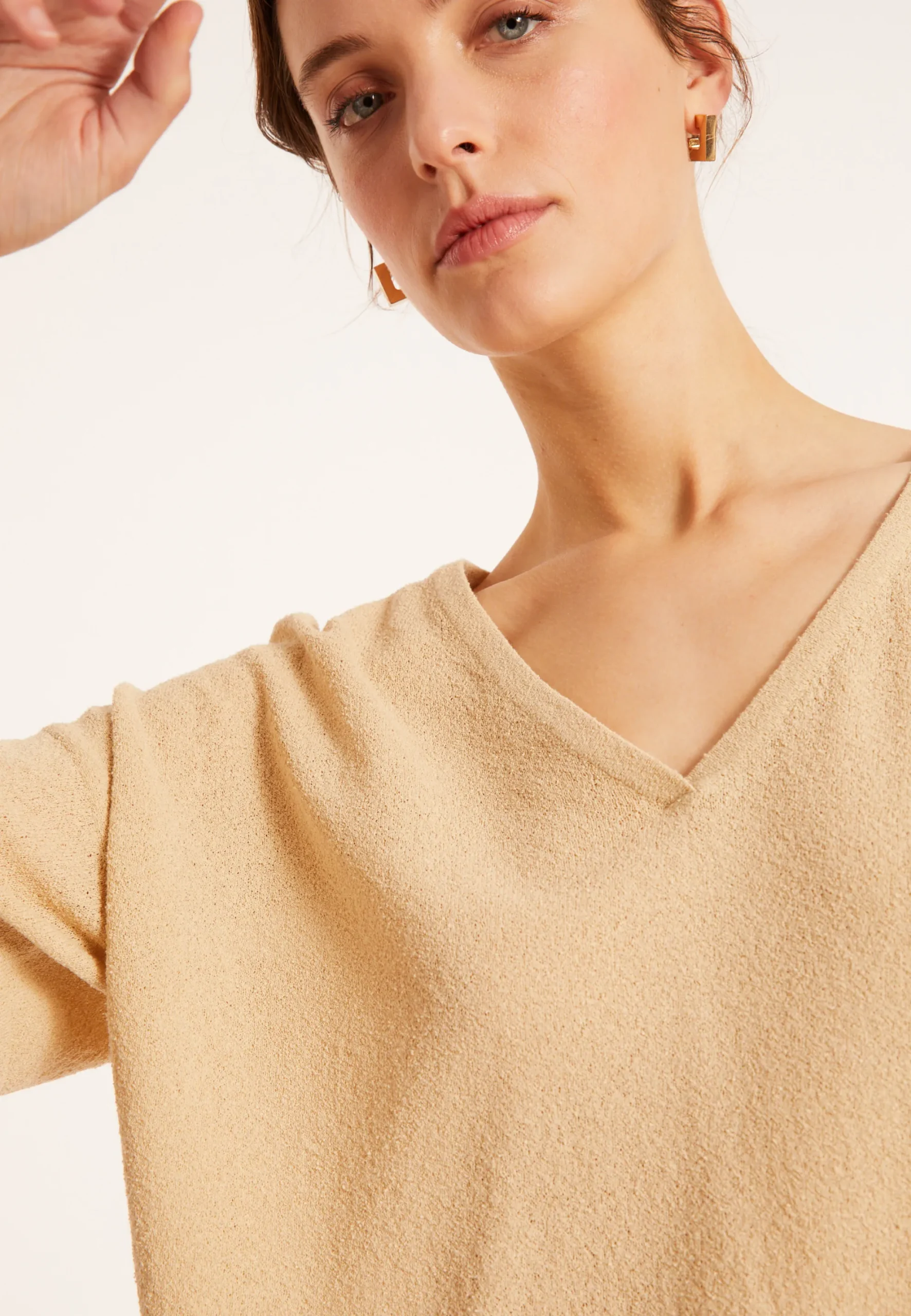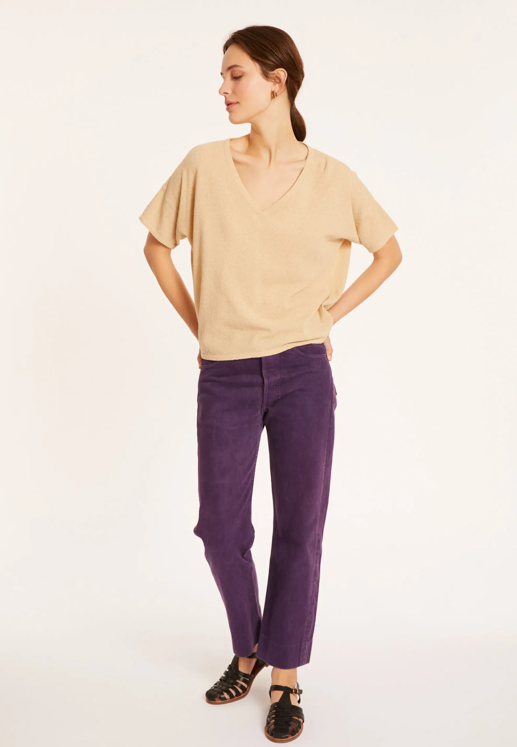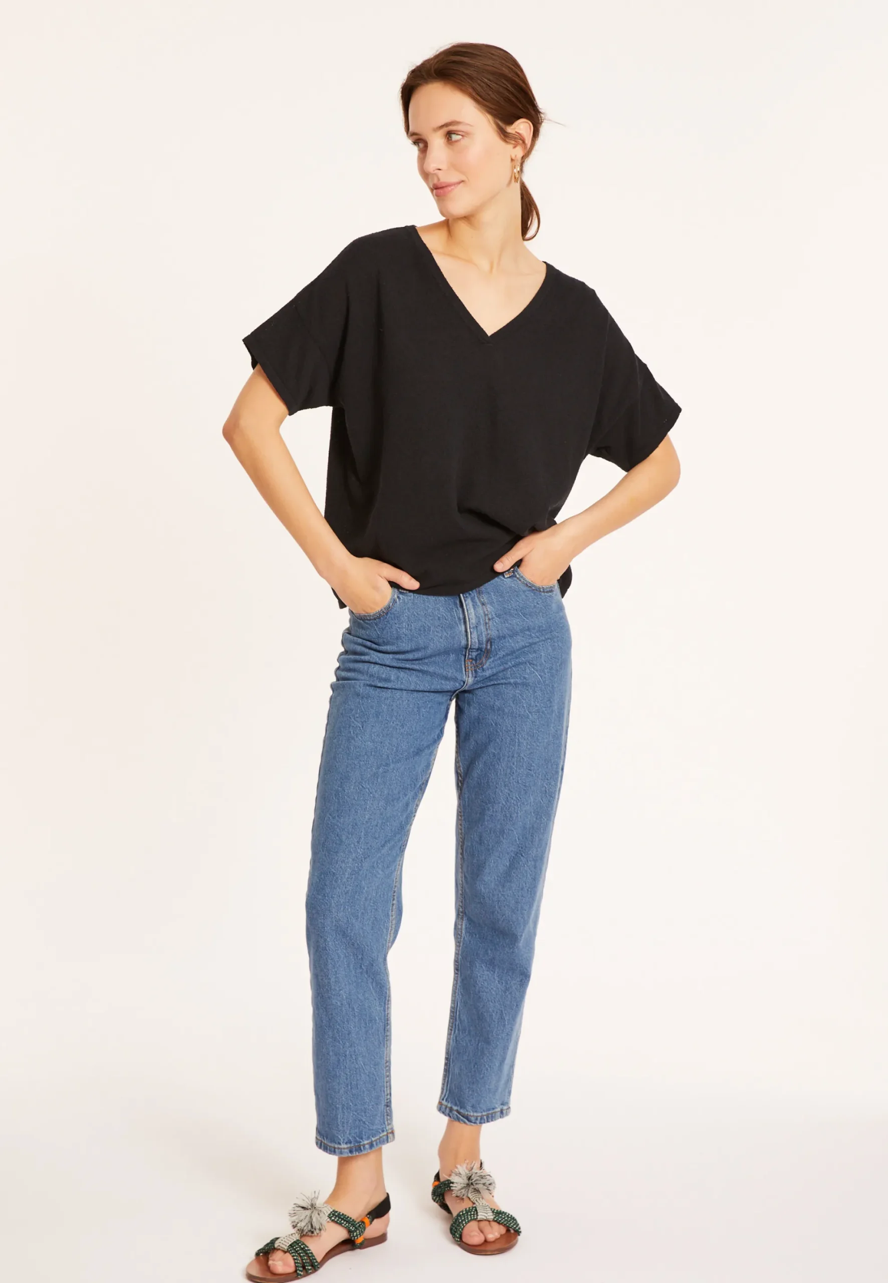 Ce T-Shirt En Coton Brosse Est Doux Et Confortable Tout En Etant Elegant Et Sophistique Grace A Son Col V. Sa Coupe Ample En Fait Un Choix Tendance Et Moderne Pour Une Tenue Decontractee. Fabrique En Europe Avec Des Materiaux De Qualite Superieure, Maden Est Ideal Pour Une Tenue Decontractee Ou Pour Une Soiree Chic.