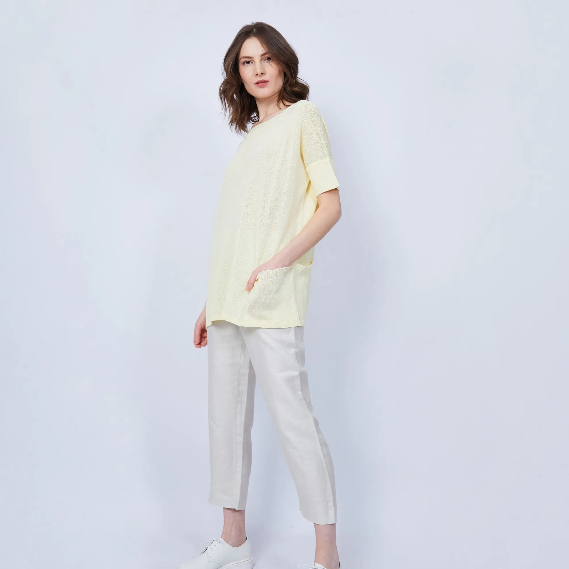 T-Shirt Femme Manches Courtes En Viscose Crepe. Coupe Ample Pour Se Sentir A L’Aise. 2 Poches Plaquees Sur Les Cotes. Allure Decontractee. Peut Se Porter Avec Notre Pantalon Jaguar. Dans La Meme Matiere, Vous Aimerez Aussi Le Gilet Colette Et Le Pull Nima.