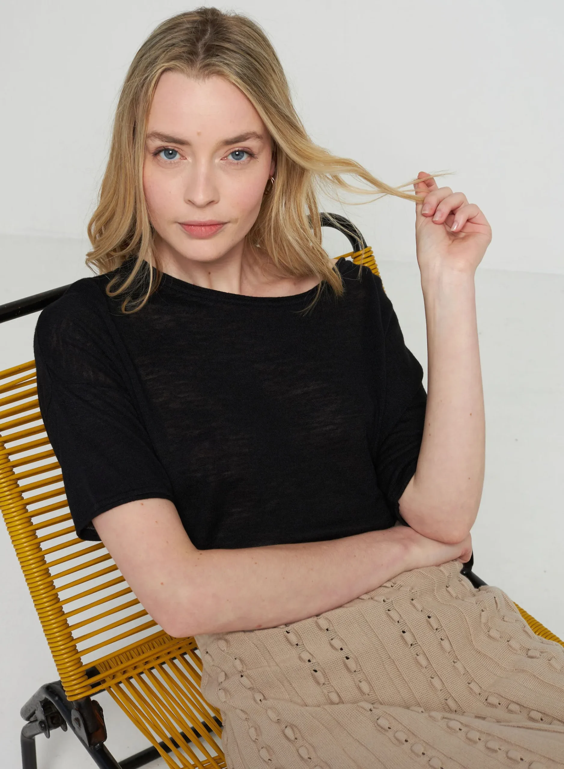 T-Shirt Ample A Encolure Ronde En Lin Flamme Tricote Dans Nos Ateliers. Ideale A Porter Lors De Periodes De Fortes Chaleurs, Notre Modele Taslim Vous Apportera Confort Extreme Lors De Vos Journees. Vous Vous Sentirez A L’Aise Dans Sa Coupe Carre, Ample Et Son Emmanchure Basse. Notre Modele Possede Des Finitions Roulotees Au Niveau De Son Col Et En Bas De Manches. Dans Une Coupe Identique Et Boutonne Dans Le Dos, Decouvrez Notre Modele : Tally