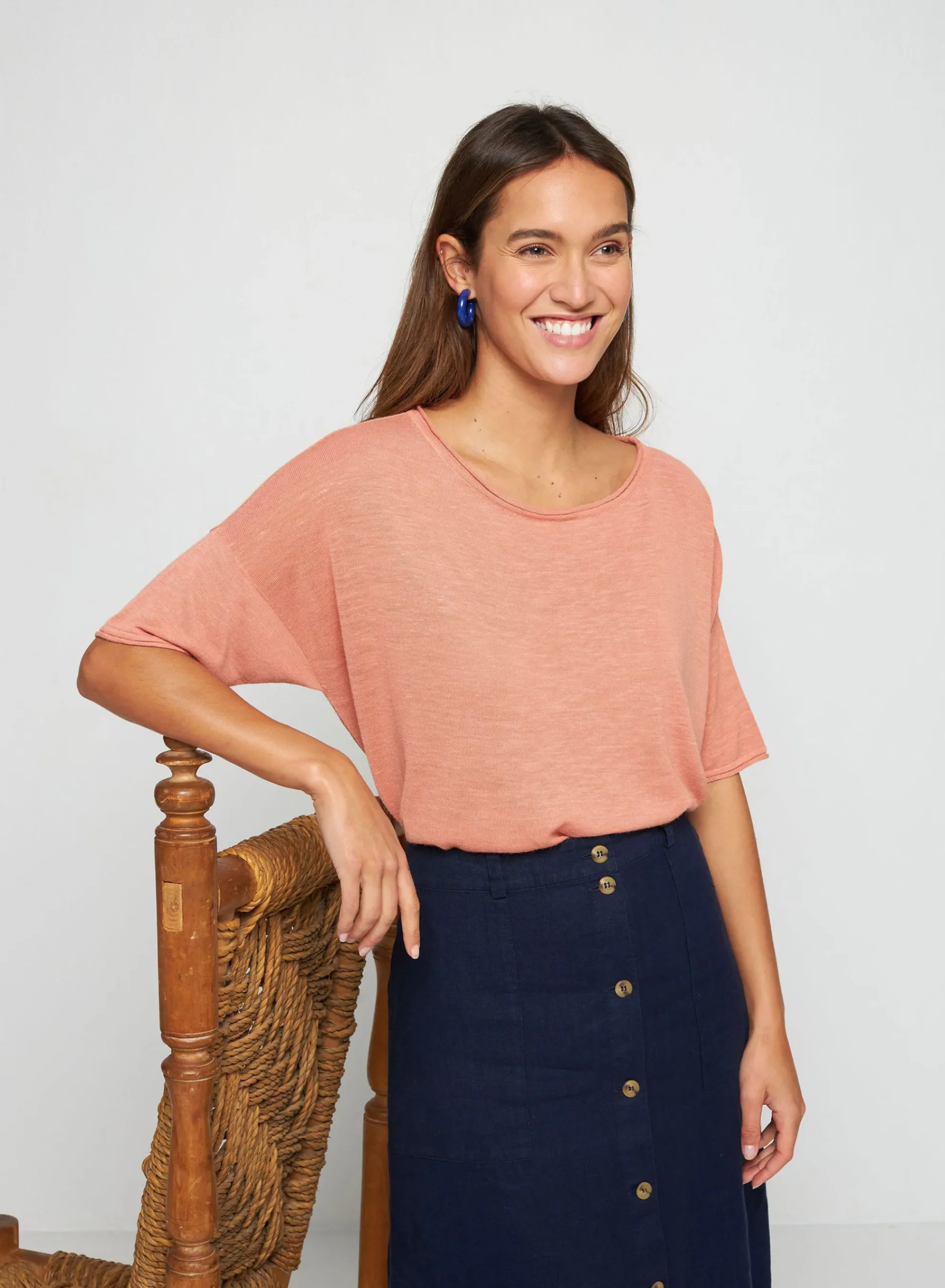 Maison Montagut T-Shirt Ample Manches Coudes En Lin Flamme – Taslim>Femme T-Shirts