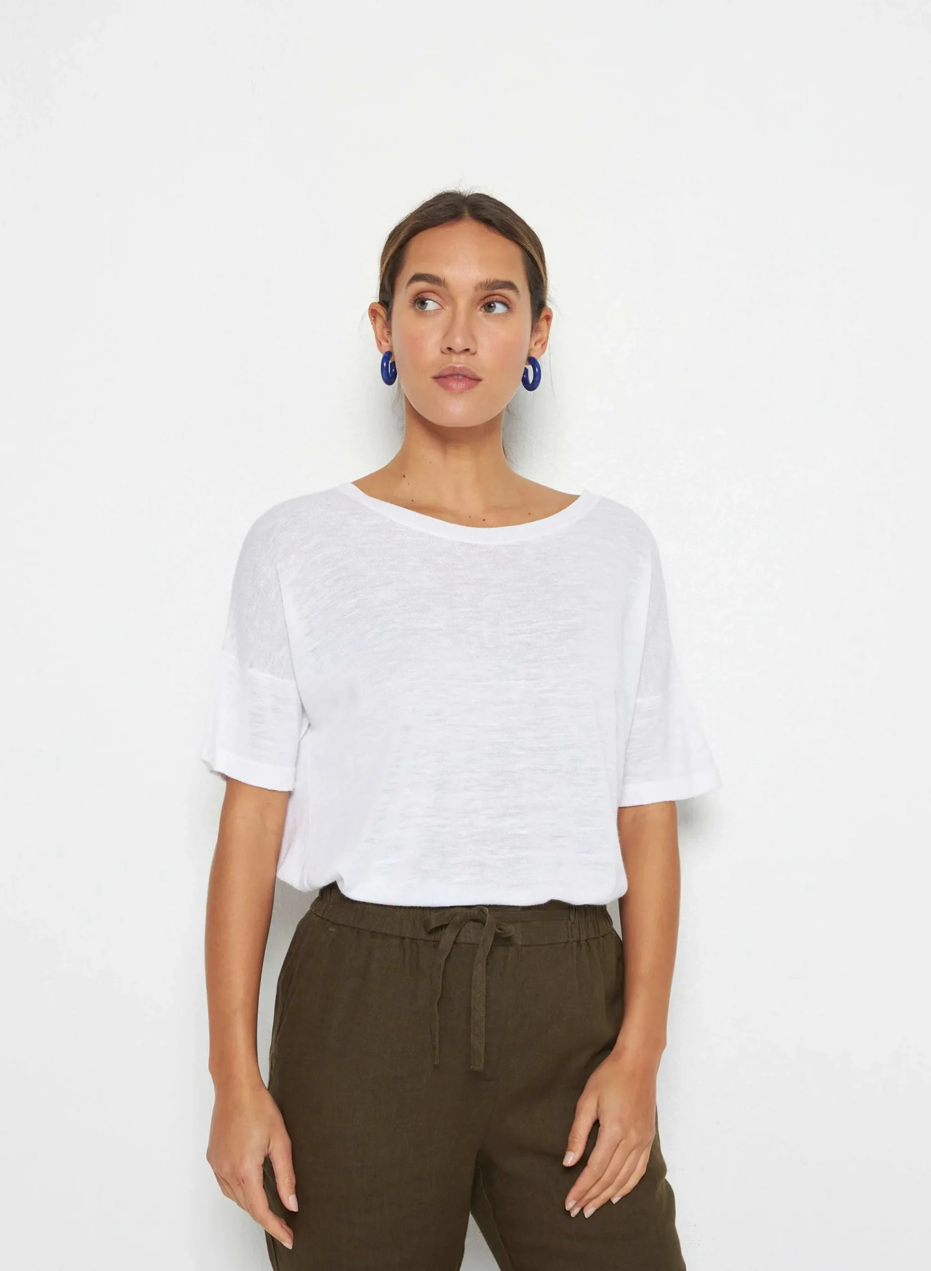 T-Shirt Ample A Encolure Ronde En Lin Flamme Tricote Dans Nos Ateliers. Ideal A Porter Lors De Periodes De Fortes Chaleurs, Notre Modele Tally Vous Apportera Confort Et Fluidite Extreme. Vous Vous Sentirez A L’Aise Dans Sa Coupe Carre, Ample Et Son Emmanchure Basse. Notre Modele Possede Des Boutons Dans Le Dos. Dans Une Coupe Identique Et Sans Boutons Dans Le Dos, Decouvrez Notre Modele : Taslim