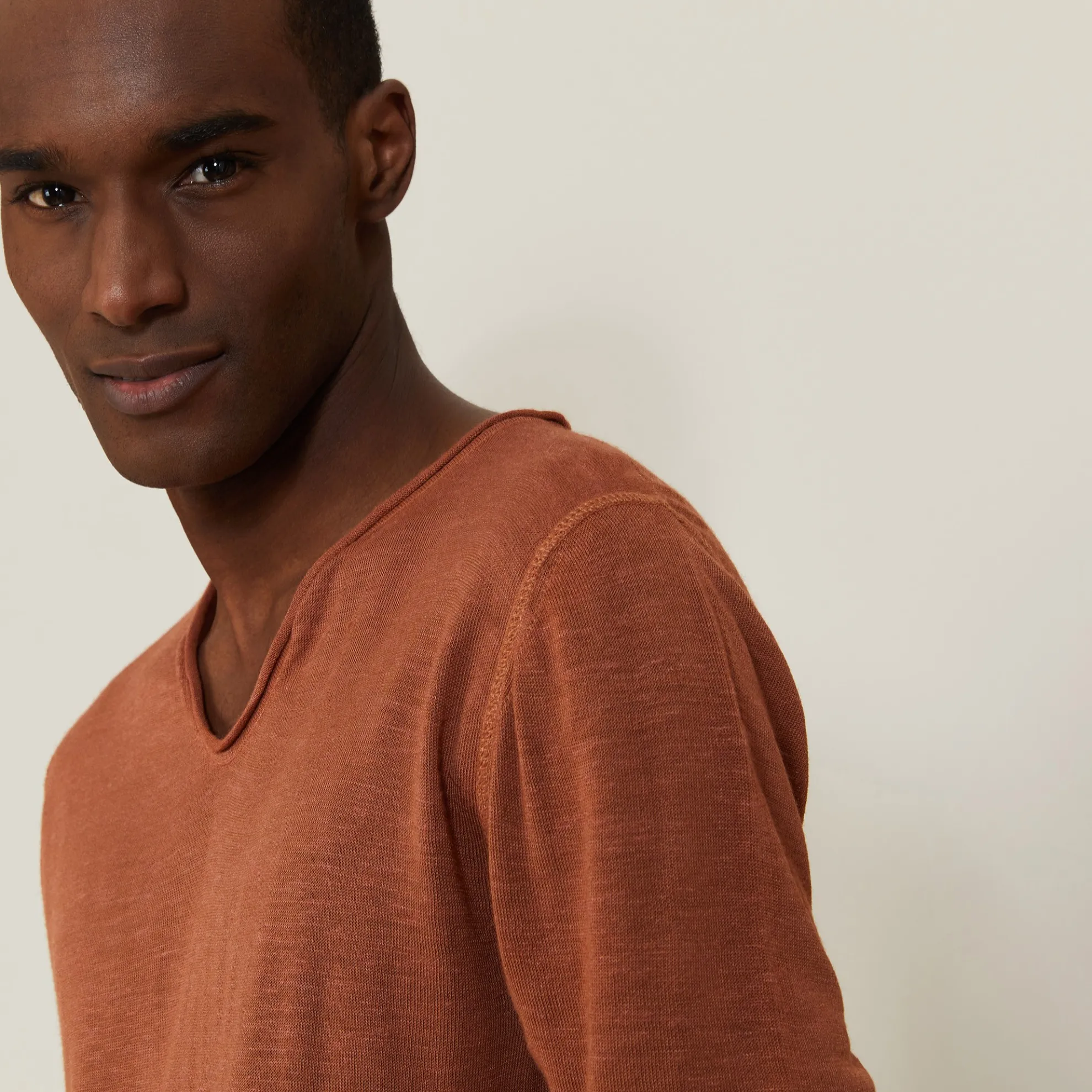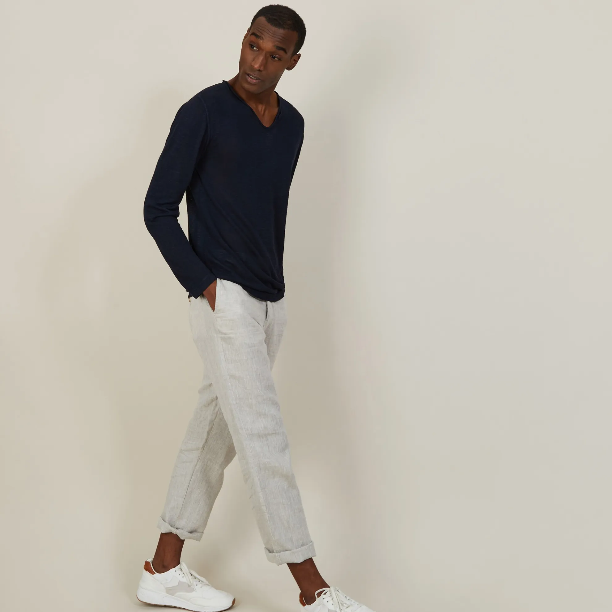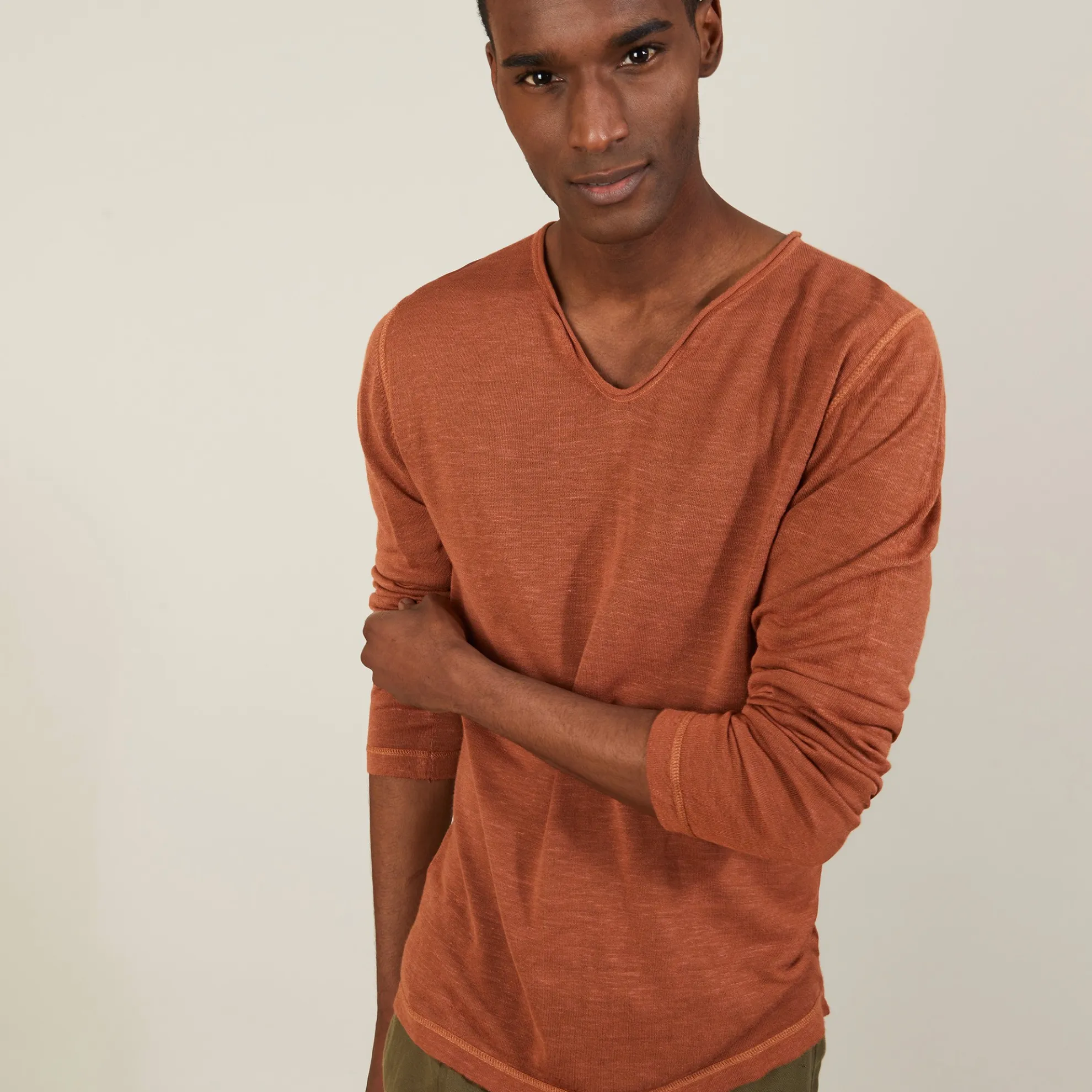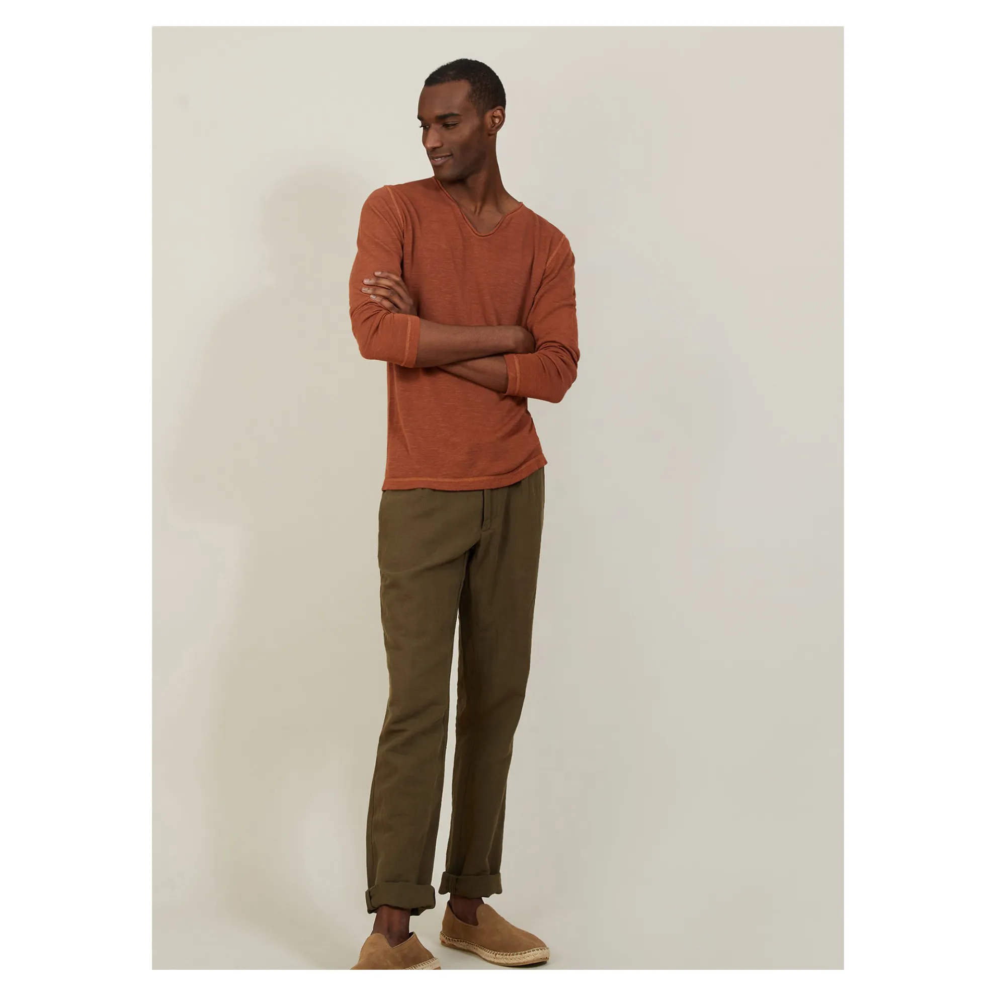 T-Shirt En Lin Flamme Tricote En Point Jersey Dans Nos Ateliers. Coupe Droite, Col Tunisien. Matiere Legere, Ideale A Porter En Periode De Forte Chaleur.