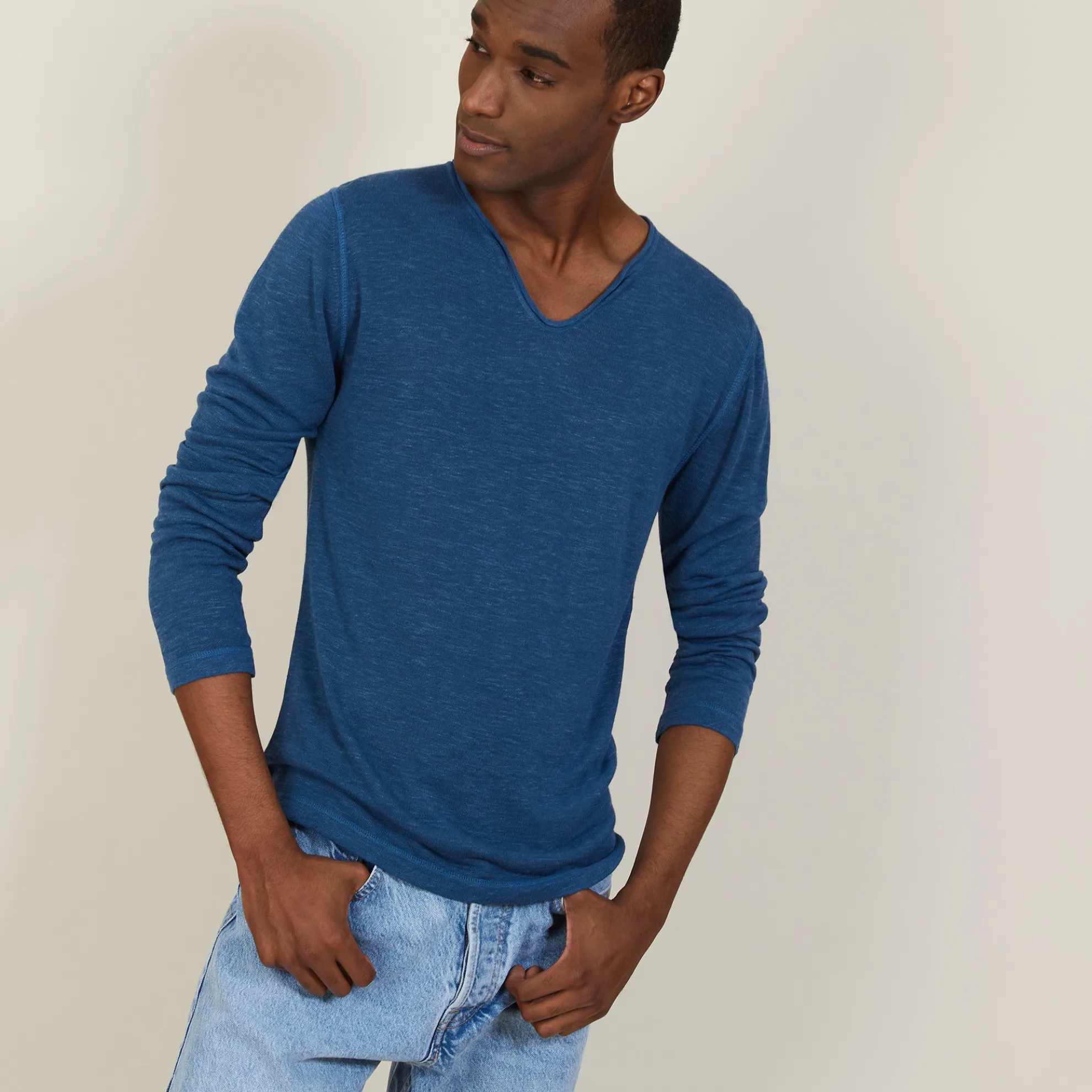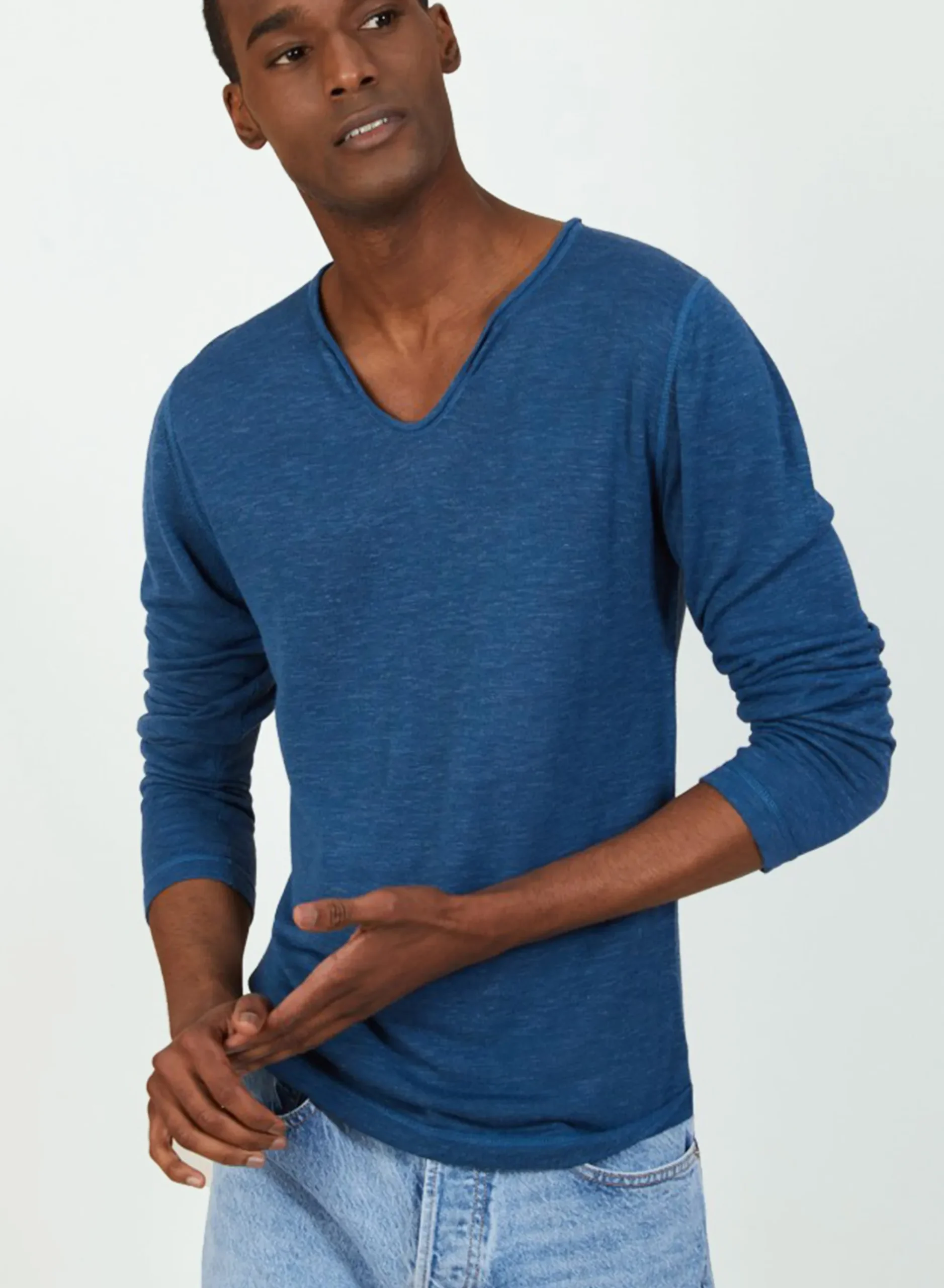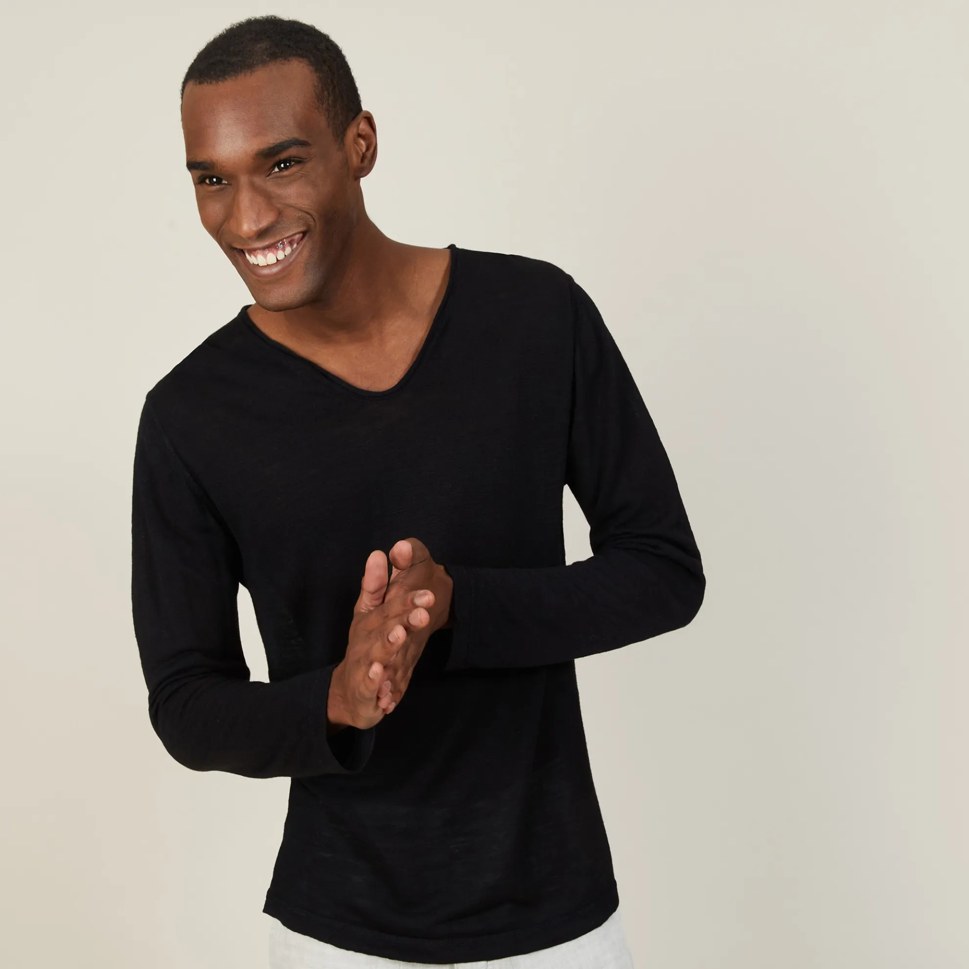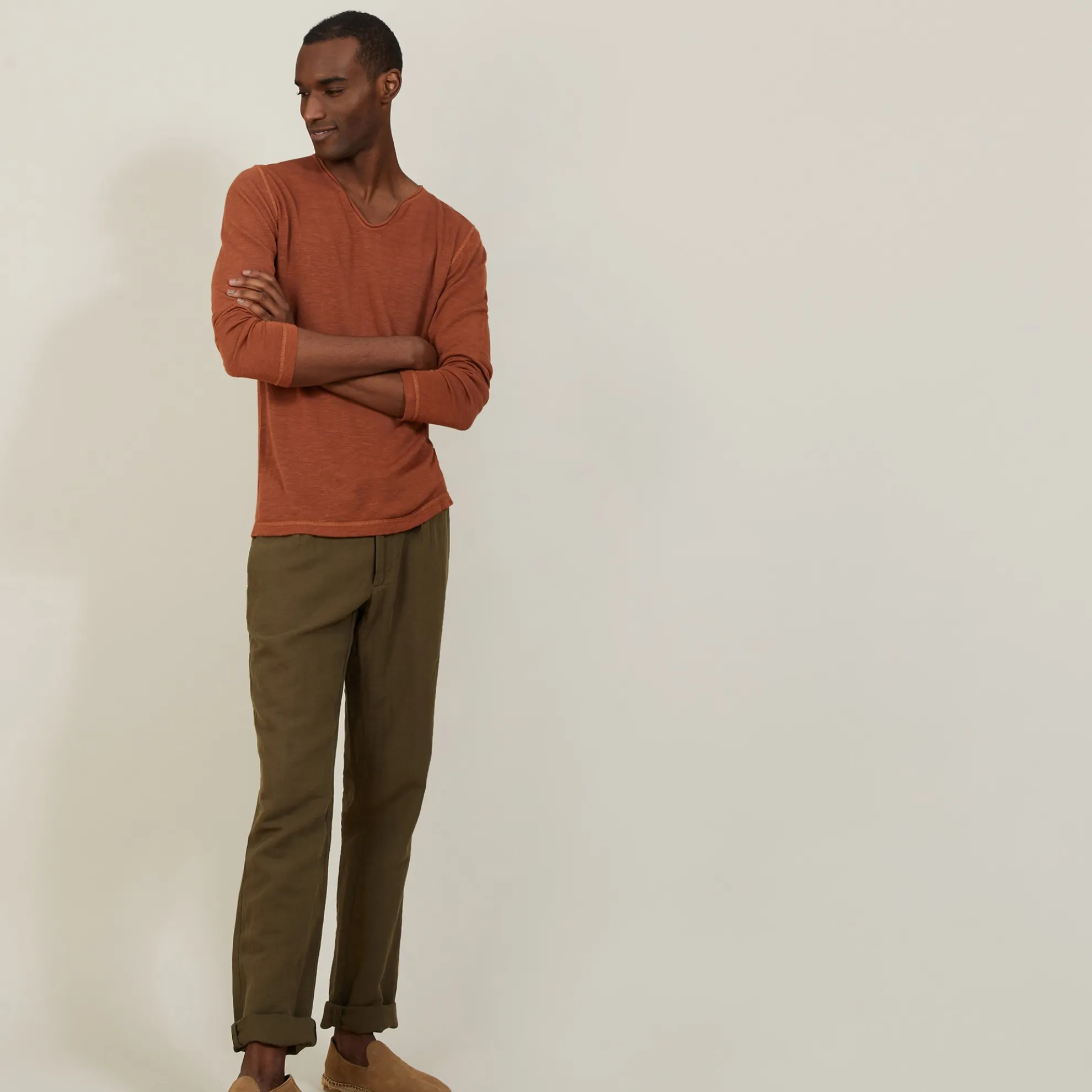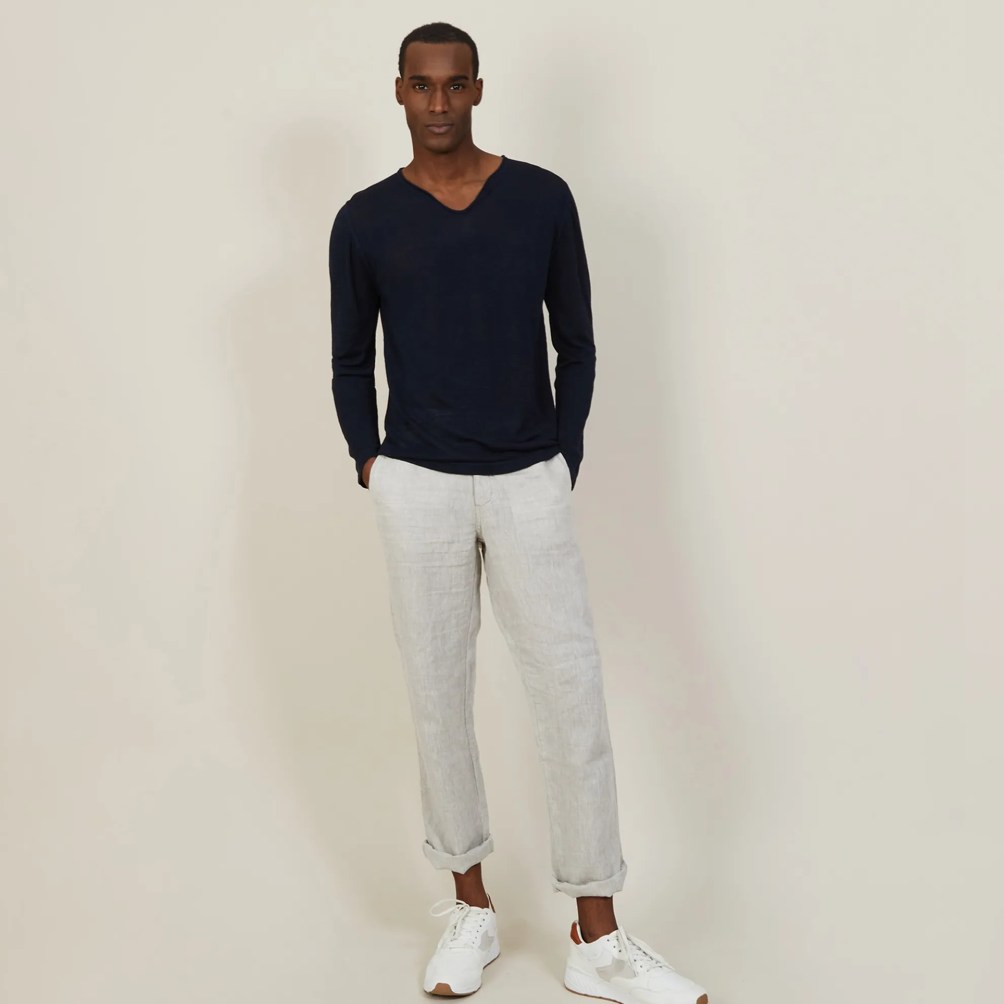 T-Shirt En Lin Flamme Tricote En Point Jersey Dans Nos Ateliers. Coupe Droite, Col Tunisien. Matiere Legere, Ideale A Porter En Periode De Forte Chaleur.