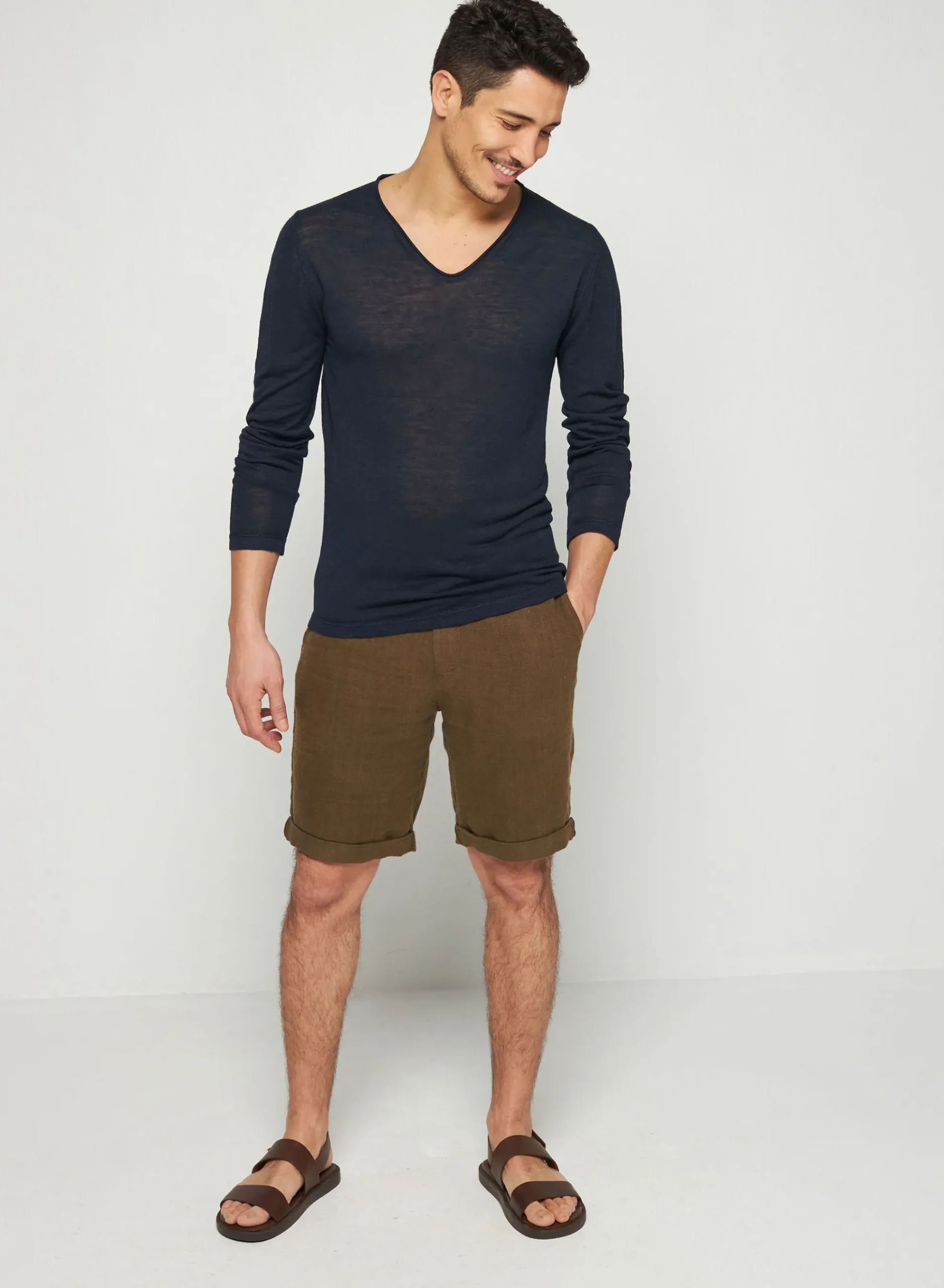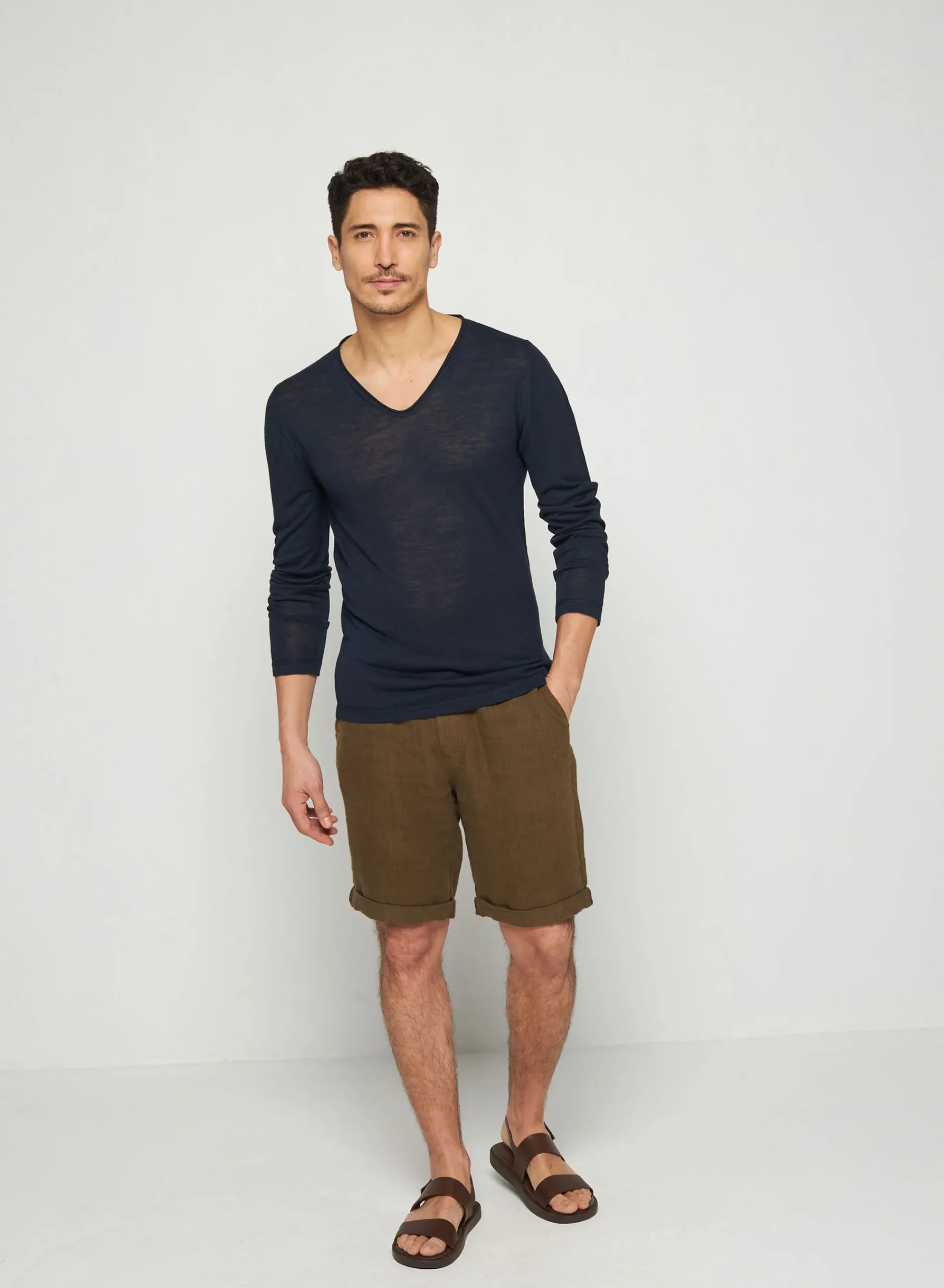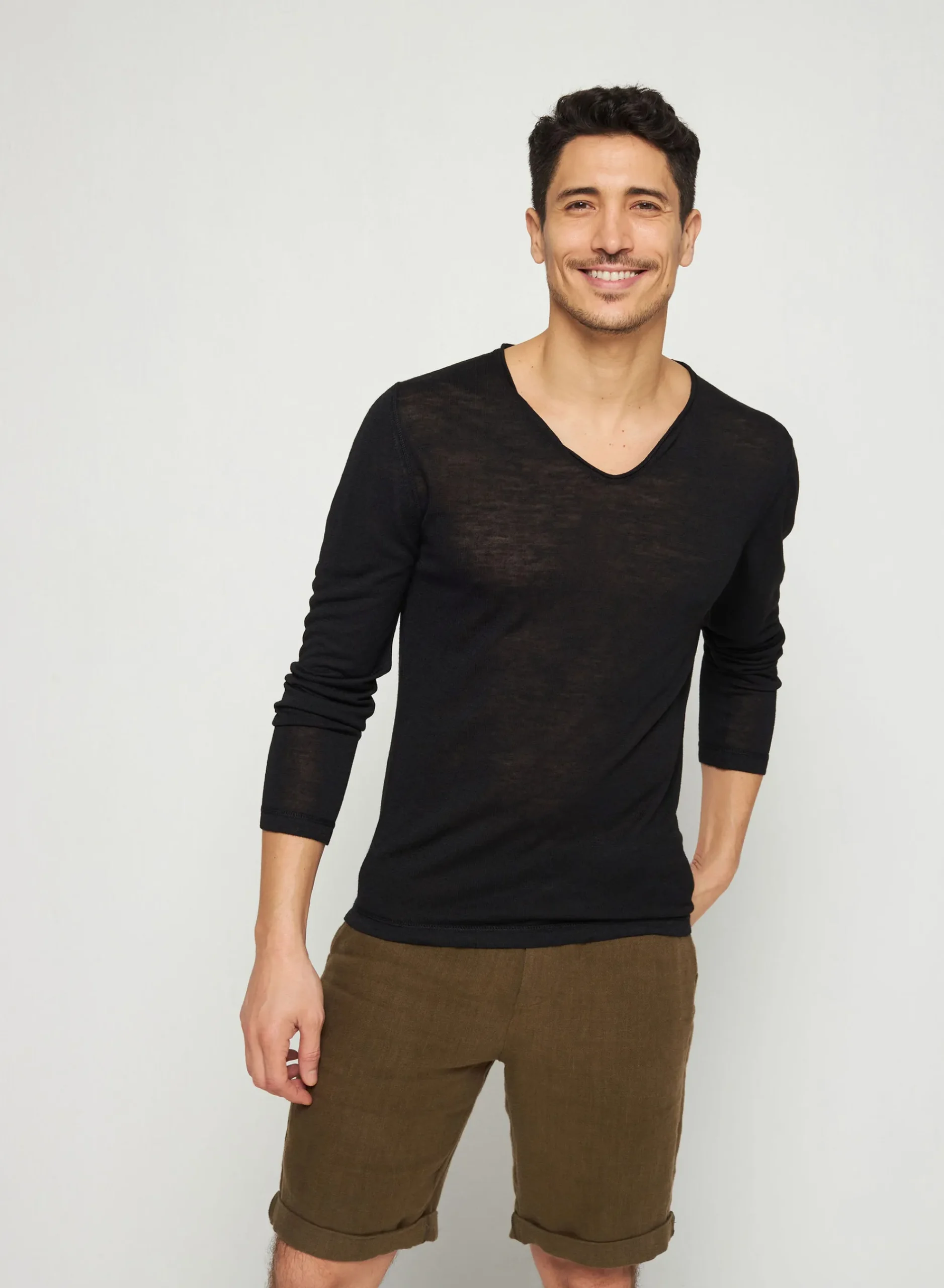 T-Shirt Manches Longues En Lin Flamme Tricote En Point Jersey Dans Nos Ateliers. Notre Modele Intemporelle Blayne Se Caracterise Par Son Col Tunisien Et Sa Matiere Legere, Il Est Ideale A Porter En Periode De Forte Chaleur.