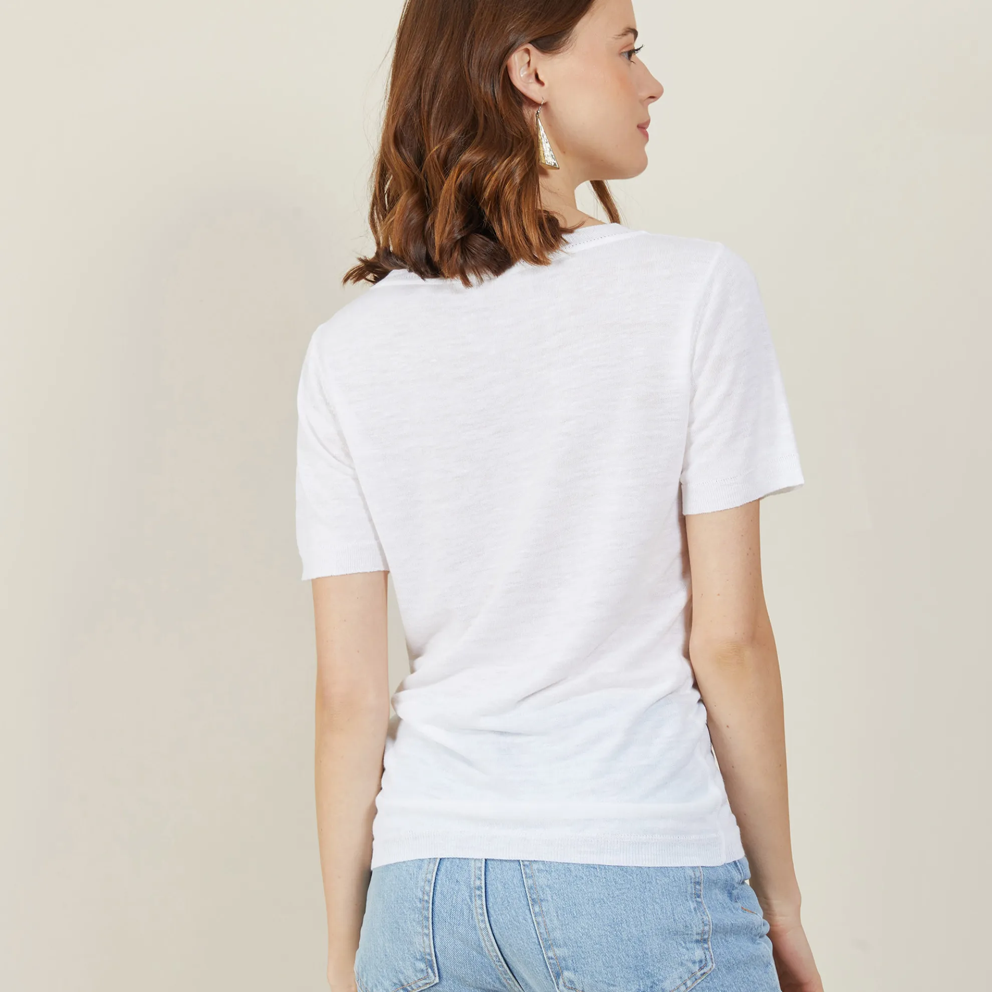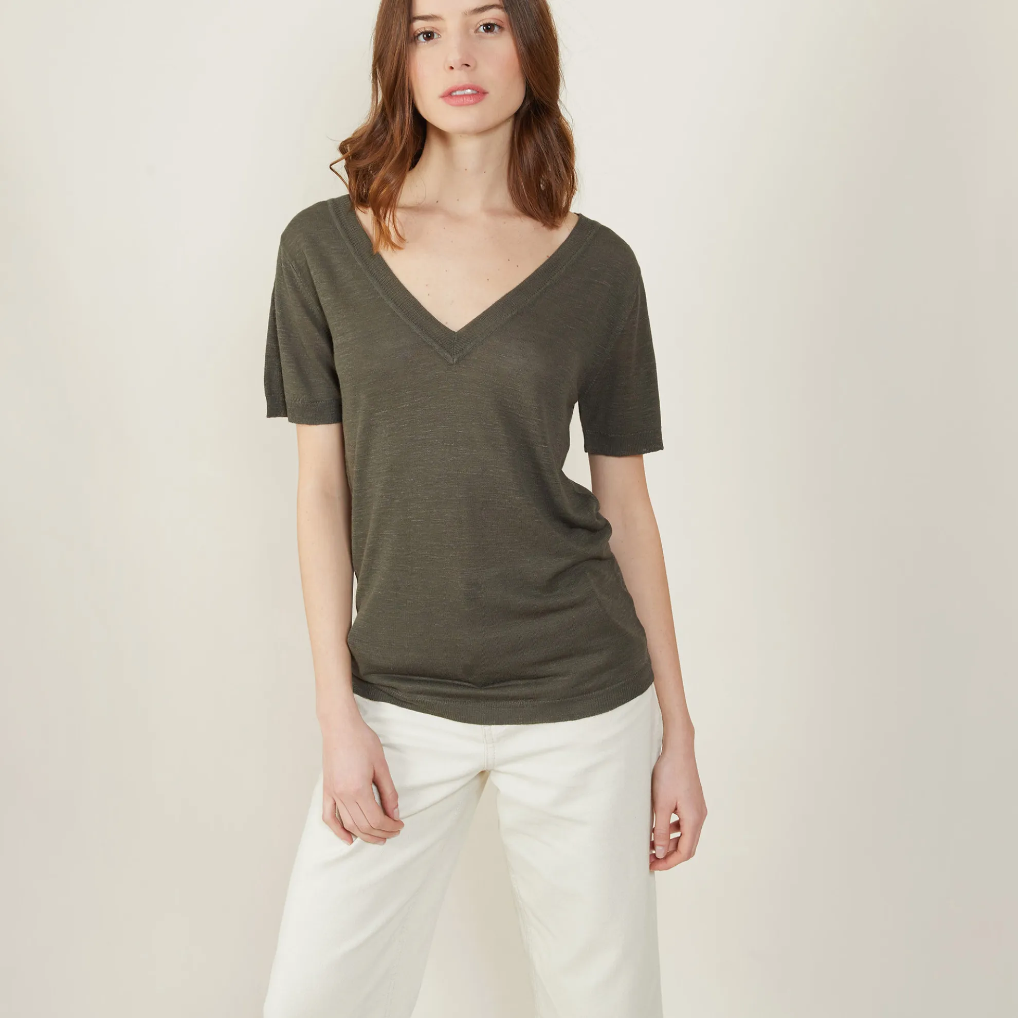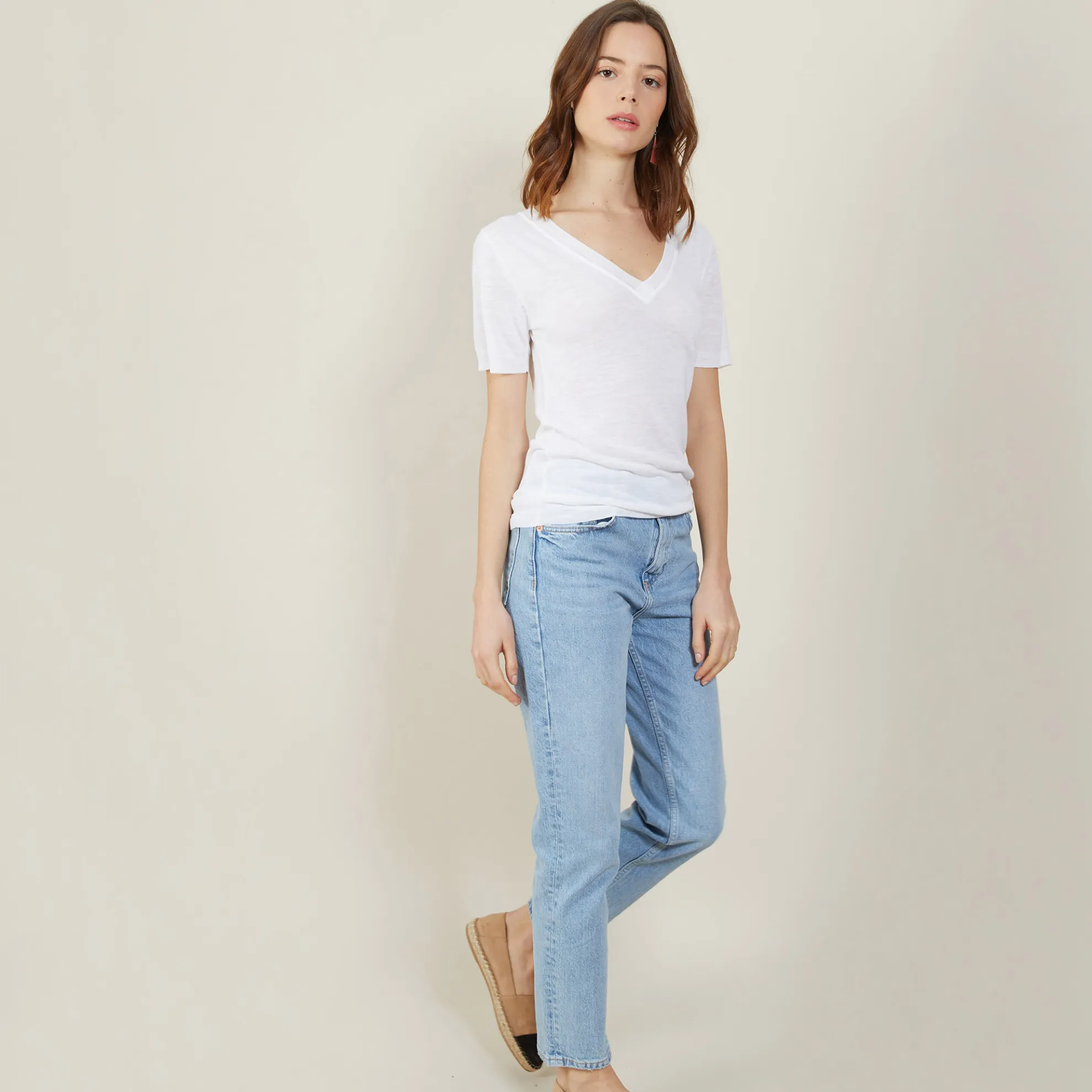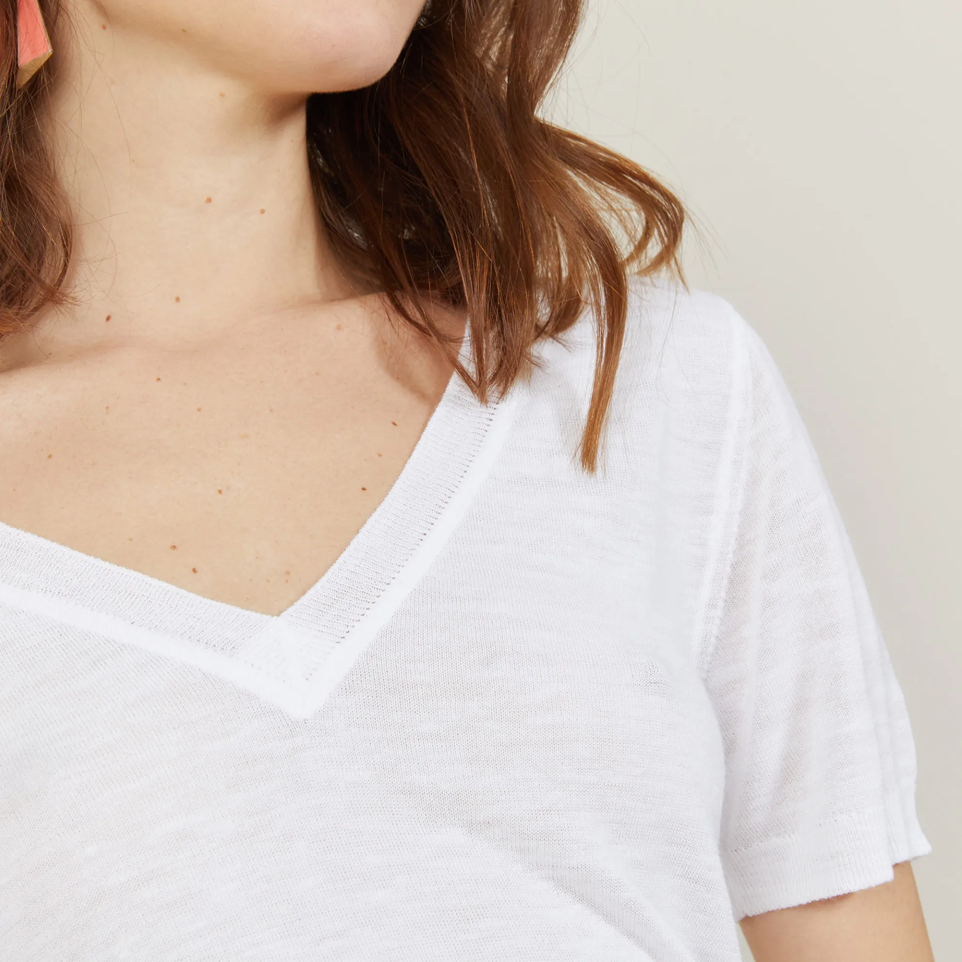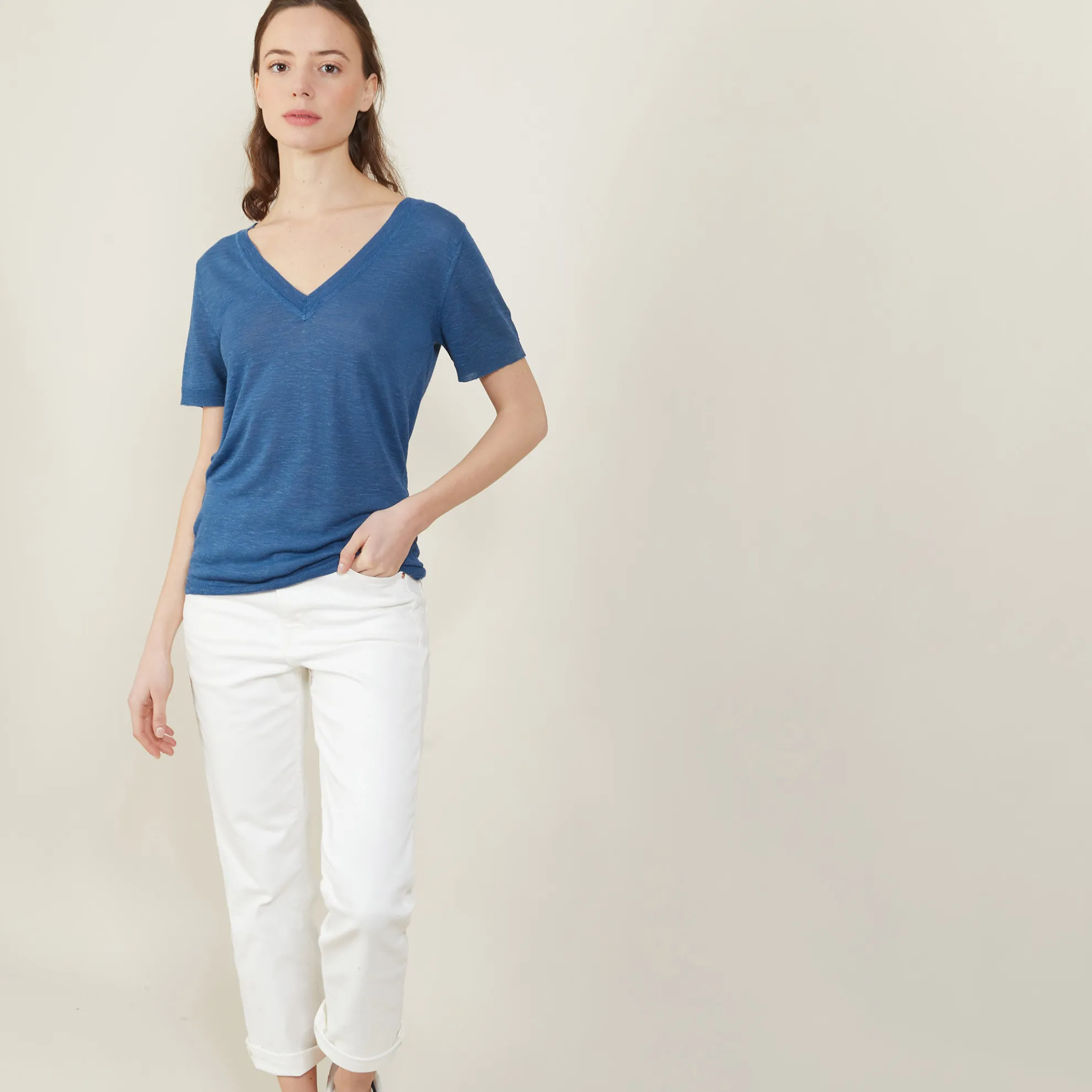 T-Shirt Col Encolure V Tricote En Point Jersey Au Portugal. Coupe Droite. Matiere Legere, Ideale A Porter En Periode De Forte Chaleur.
