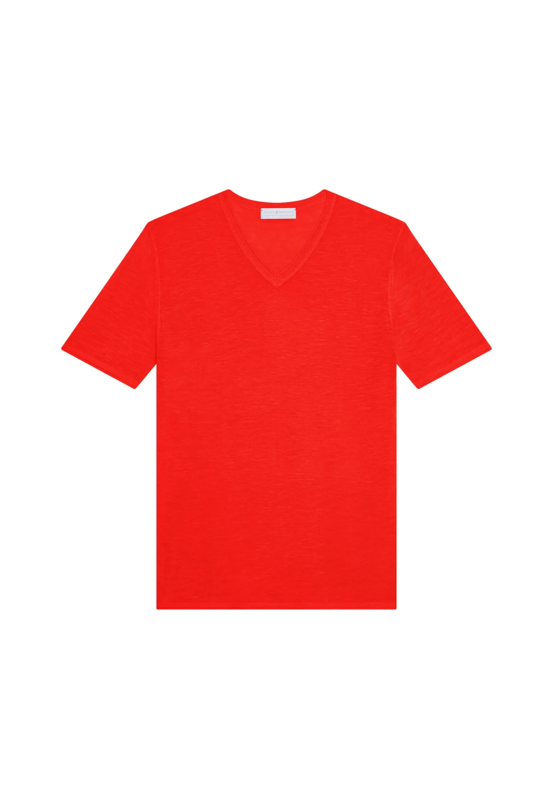 T-Shirt A Manches Courtes, Col V En Lin Flamme Pour Homme. Un T-Shirt Leger Et Tres Agreable A Porter Pendant La Periode Estivale. Ce Modele A Coupe Droite Non Moulante Possede Des Finitions Roulees Sur Son Col Pour Un Effet Moderne. Dans Le Meme Style, Vous Allez Apprecier Ce Meme Modele Mais En Version Col Rond : Renaud