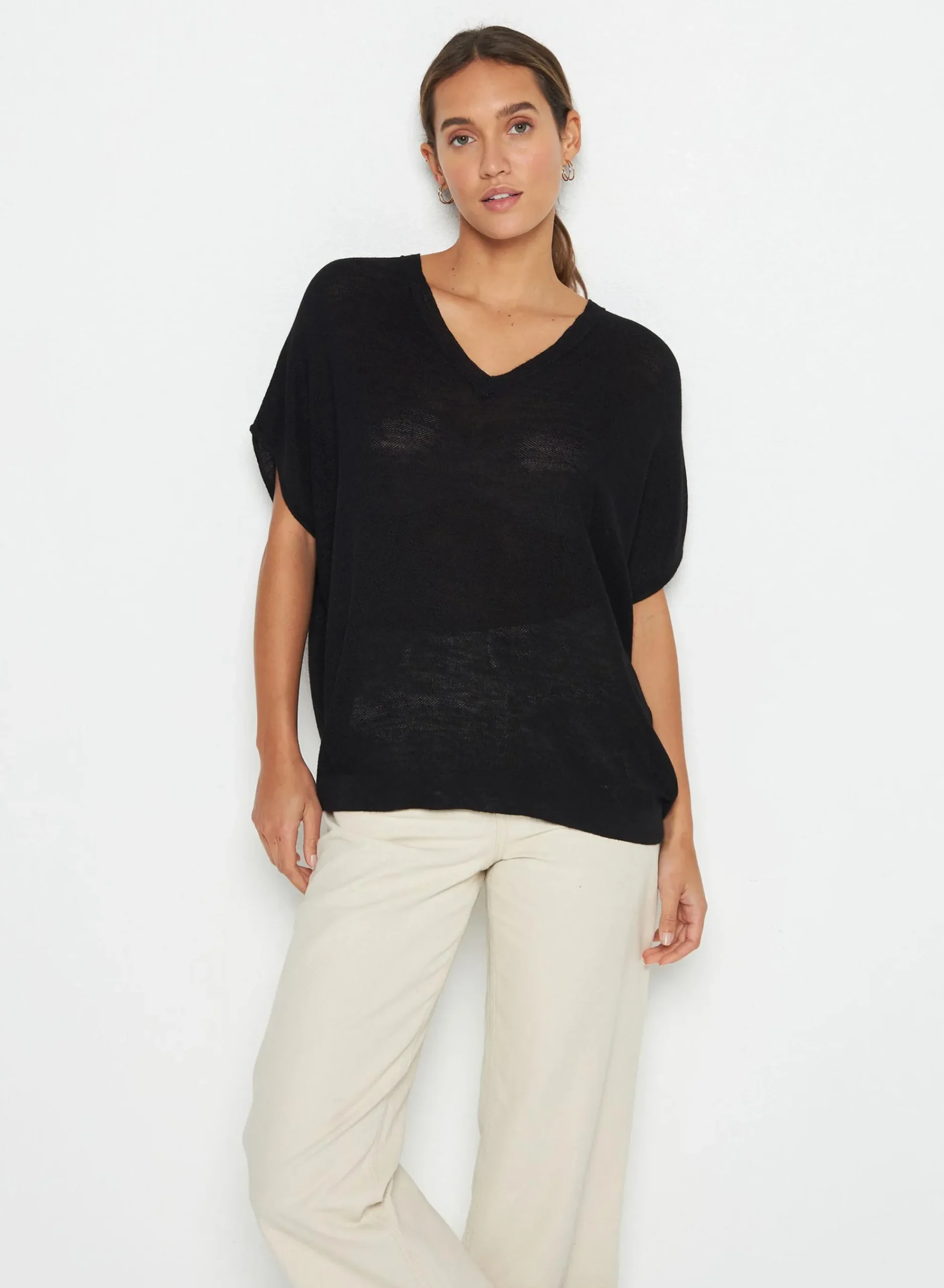 T-Shirt En Col V Manches Courtes Et Chauves-Souris Tricote Dans Nos Ateliers En Lin Flamme. Optez Pour Le Confort De Notre Modele Tarra, Avec Ses Manches Chauves-Souris Pour Vous Apporter Un Confort Optimum. Notre Lin Flamme Fluide Et Leger Est Ideal A Porter En Periode De Fortes Chaleurs.