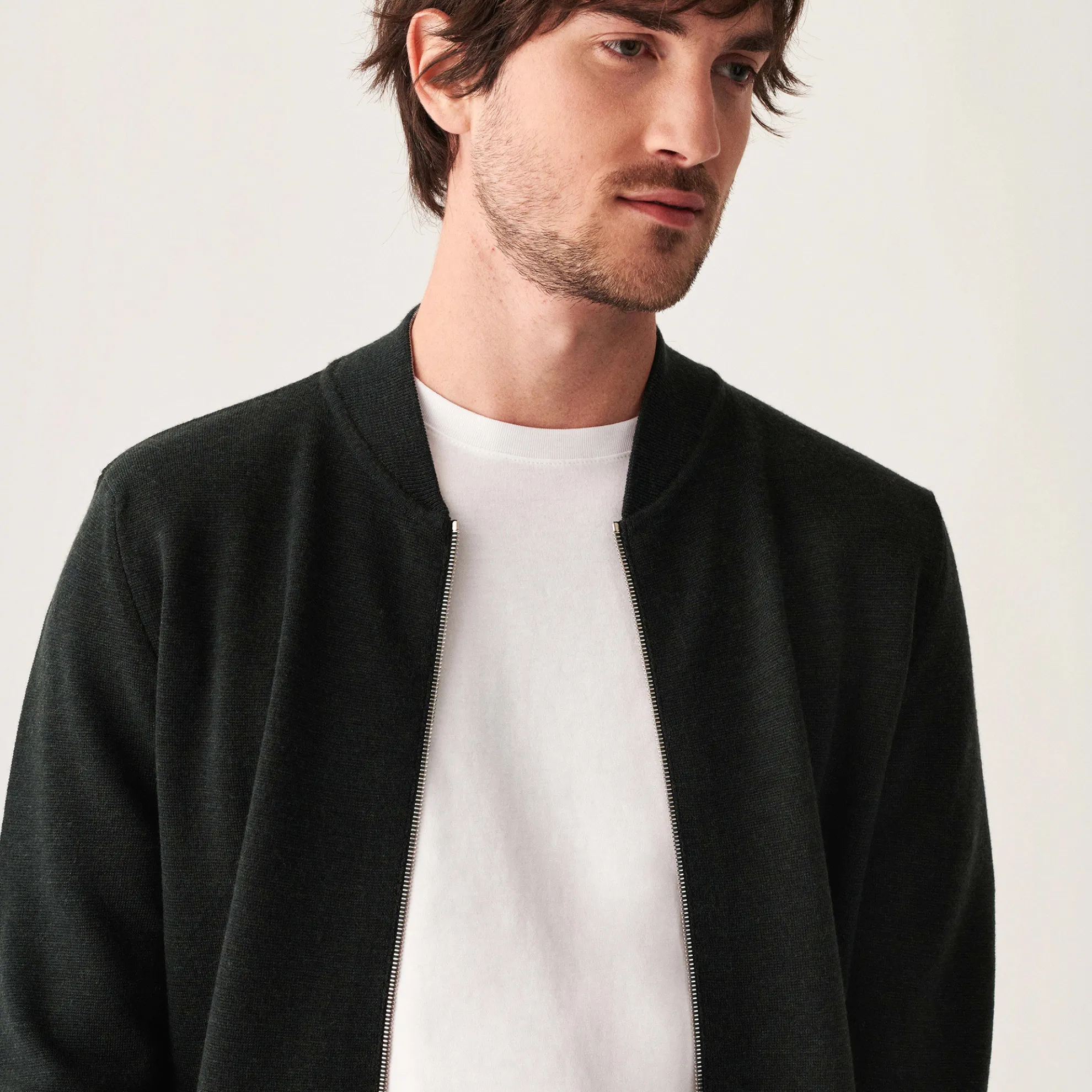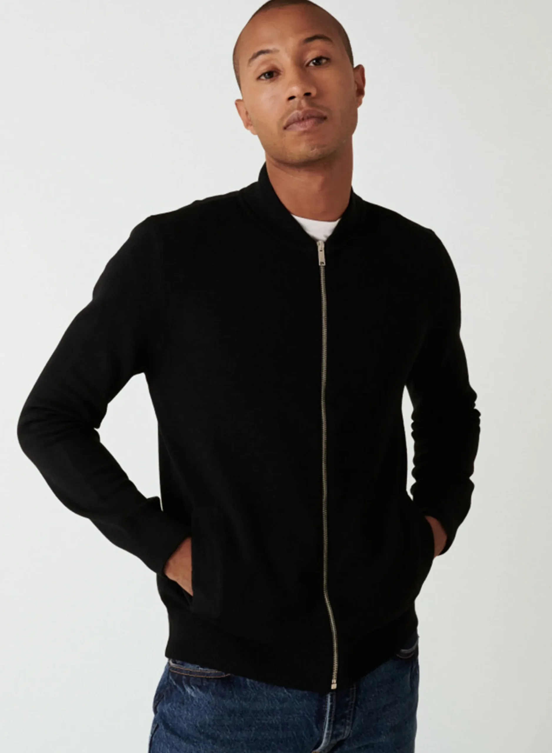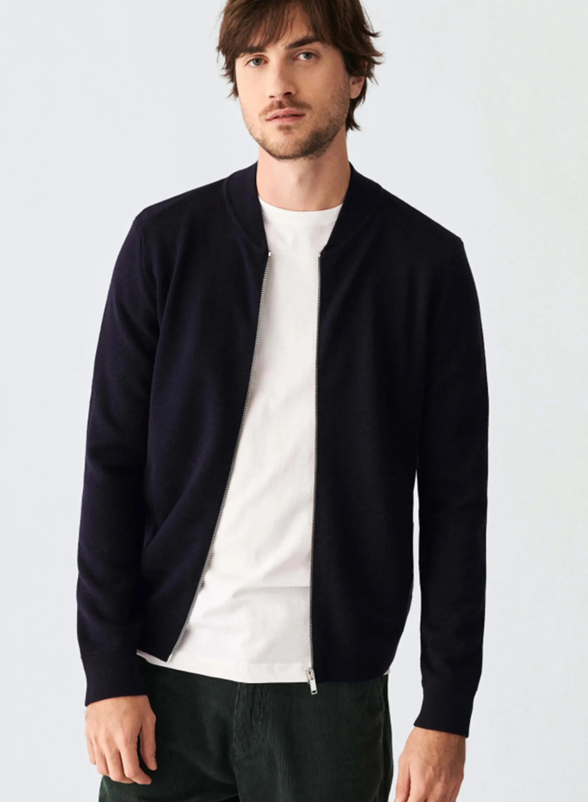 Veste A Fermeture En Zip Tricotee En Laine Merinos Grosse Maille. La Veste Est Composee De Deux Poches De Chaque Cotes.